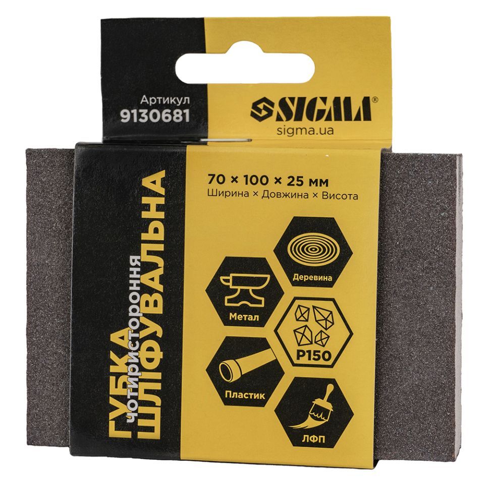 Губка шліфувальна чотиристороння 100×70×25мм P150 SIGMA (9130681)