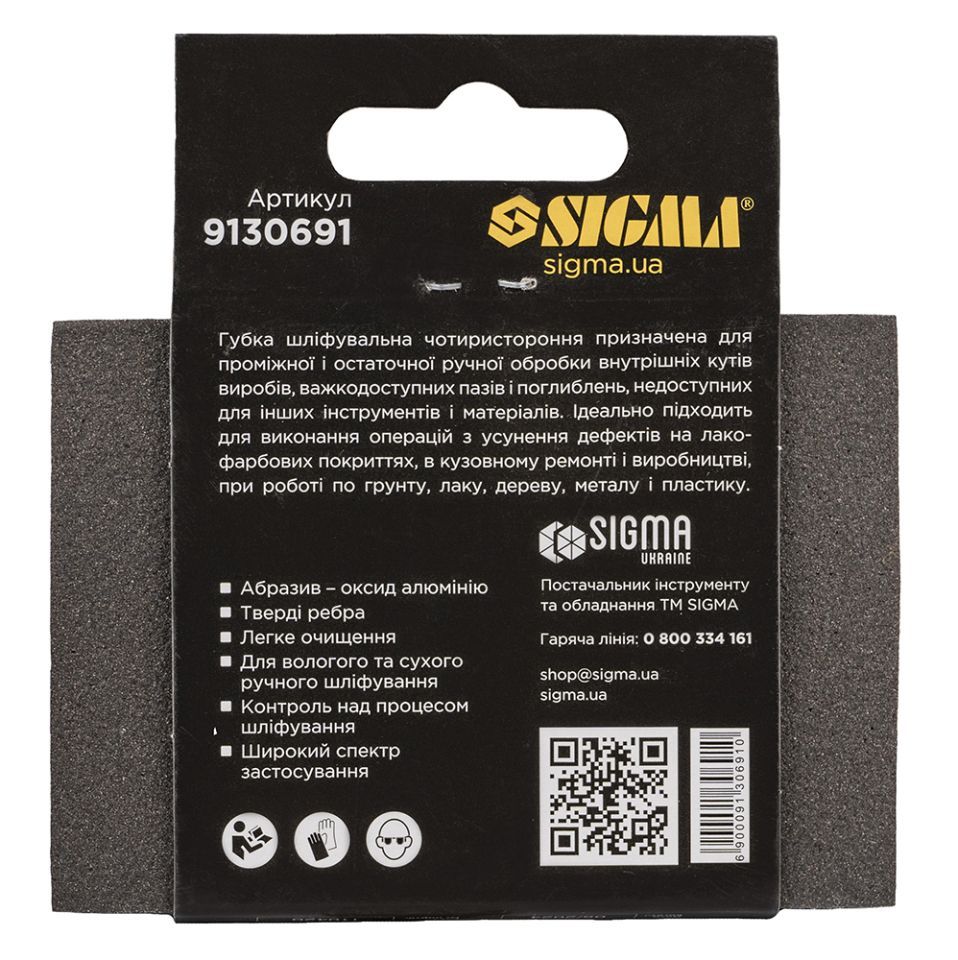 Шліфувальна губка чотиристороння 100×70×25мм P180, SIGMA 9130691