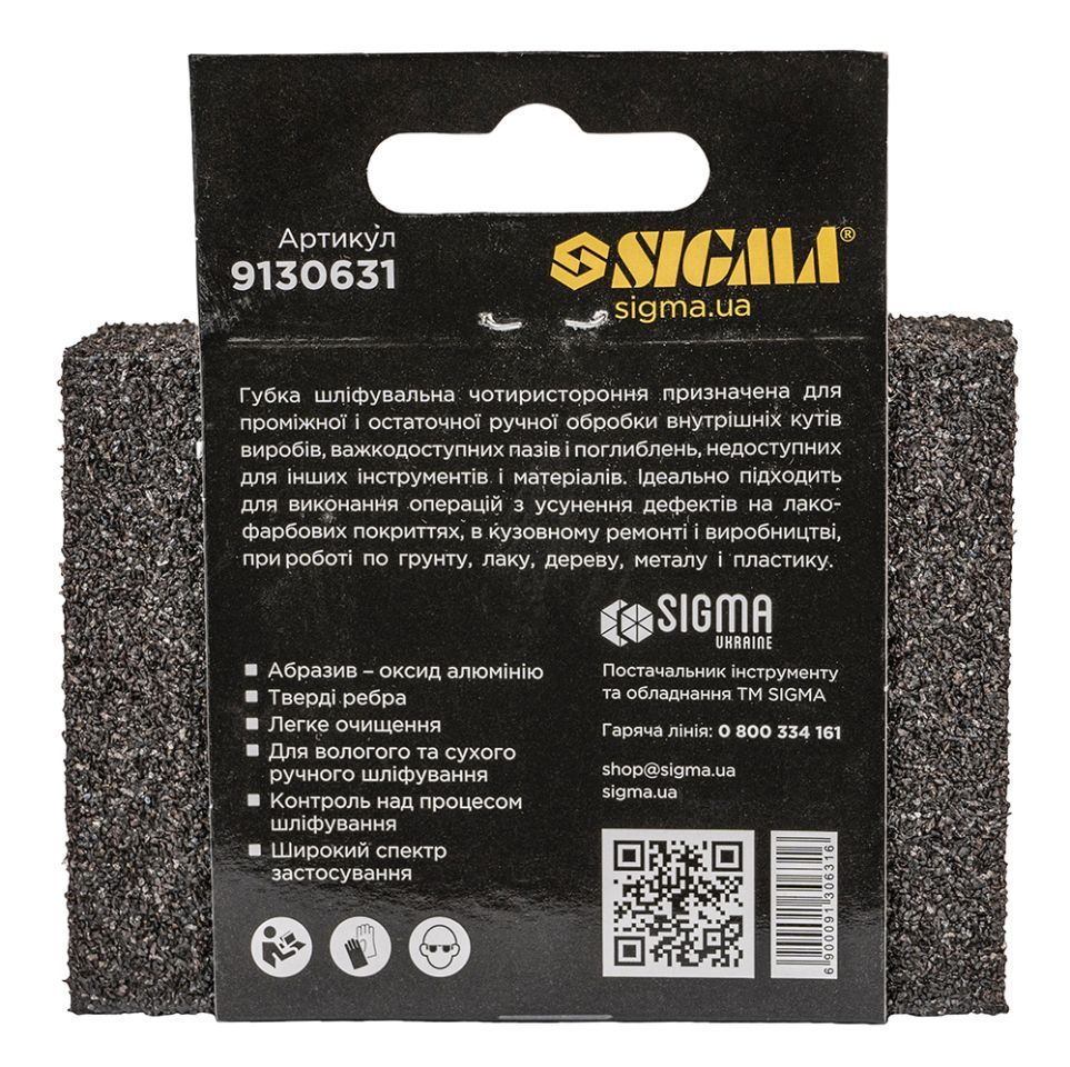Губка шліфувальна чотиристороння 100×70×25мм P40 SIGMA 9130631