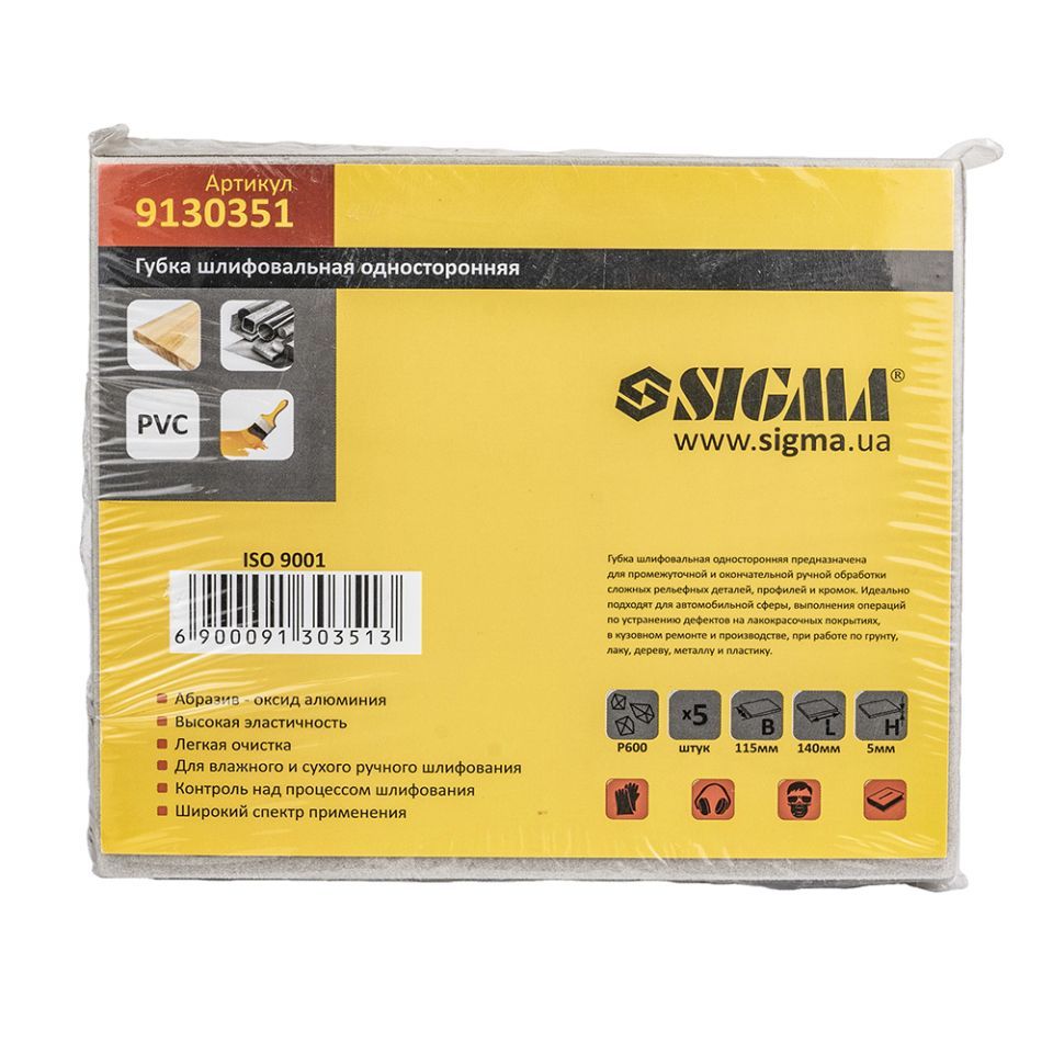 Губка шліфувальна одностороння 115×140мм P600 (5шт) SIGMA (9130351) призначена для проміжної та остаточної ручної обробки складних рельєфних деталей, профілів та кромок.