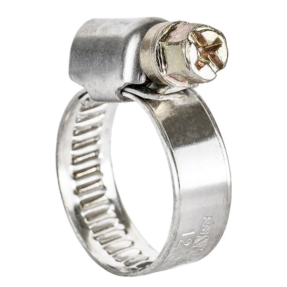 Може затискатись як ключем, так і викруткою. Спеціальна конструкція хомута забезпечує надійне та герметичне кріплення. Довговічний та багаторазовий у використанні. При використанні хомута немає ризику пошкодження шлангу. Розмір хомута підбирається відповідно до діаметру шланга (труби).