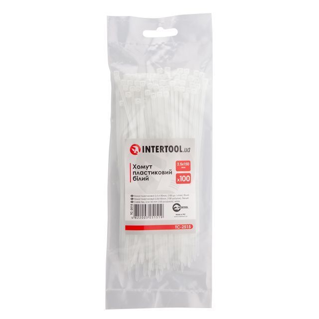 Хомут пластиковий, 2,5×150 мм, 100 шт/упак., білий INTERTOOL TC-2515