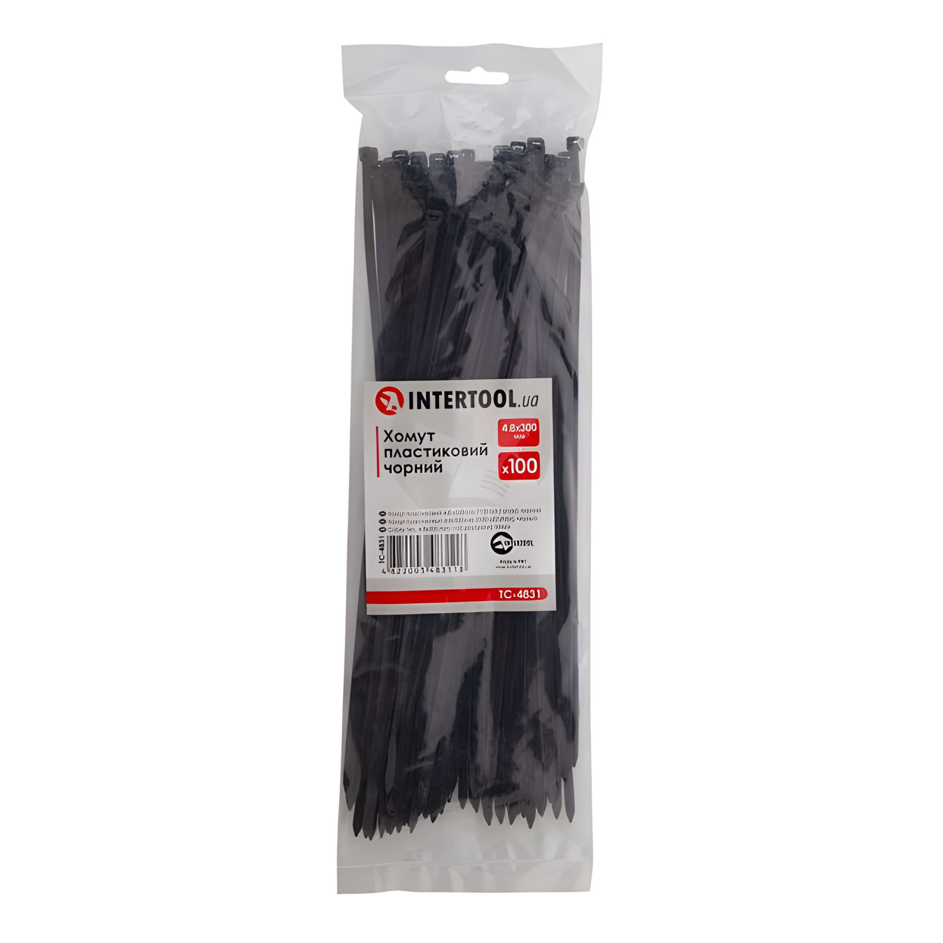 Пластикові хомути, 4,8×300 мм, 100 шт/упак, чорні INTERTOOL TC-4831