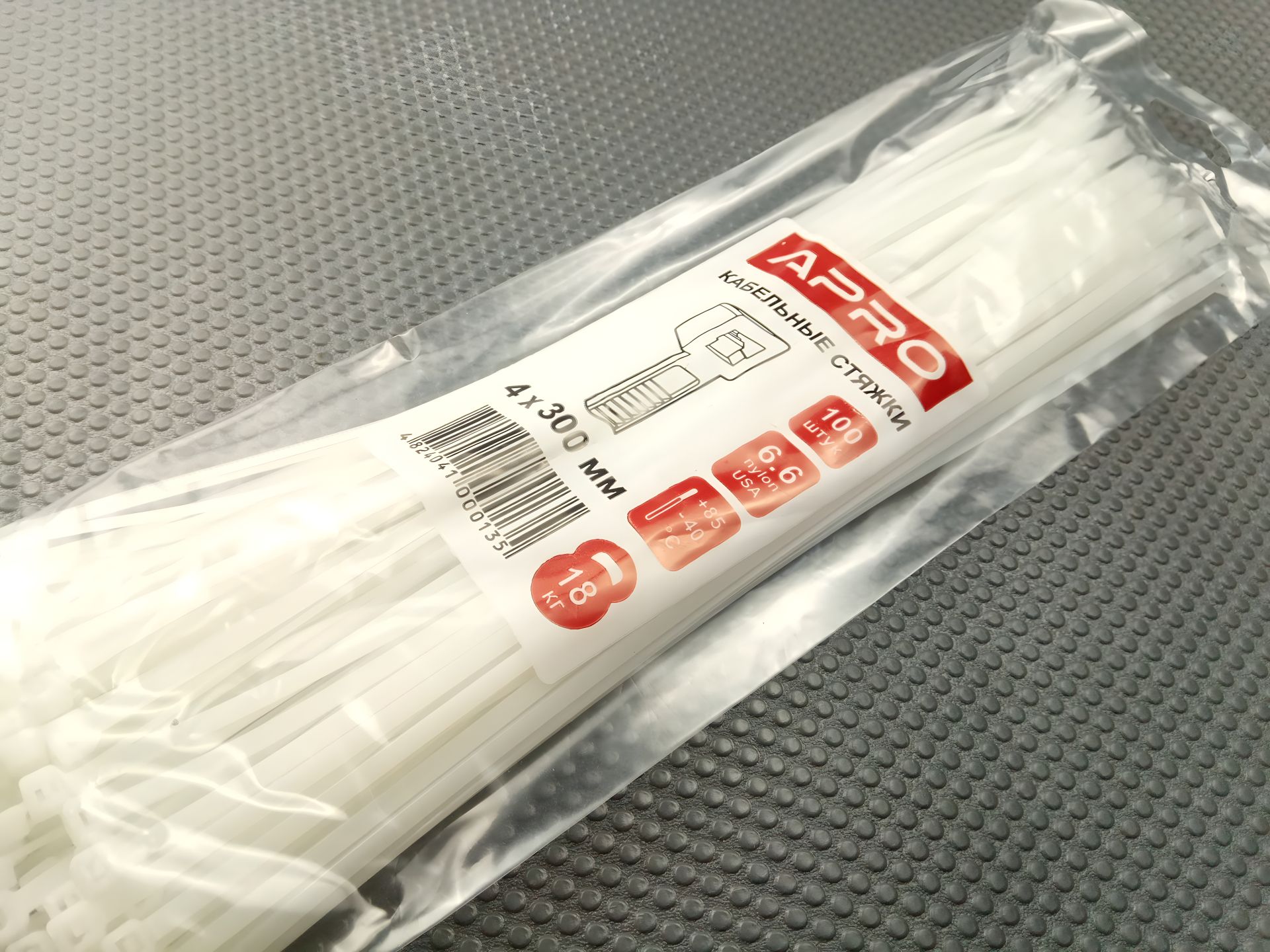 Білі пластикові хомути APRO 300х4 мм (упаковка 100 шт.) (CT-W4300)
