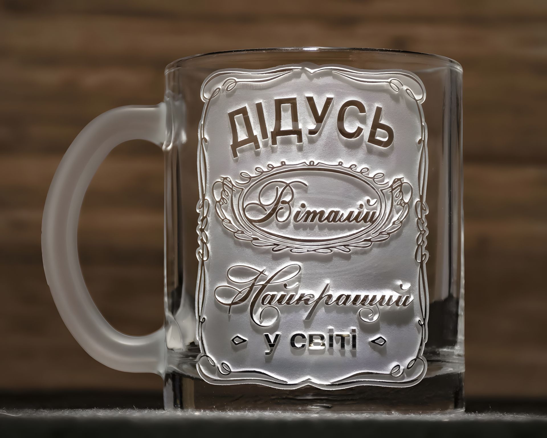 - Гравіювання з характером: Напис вигравіюваний не лазером, не є наліпкою або нафарбованим, а нанесений на скло з використанням особливої технології механічної обробки. Це створює відчуття рельєфу та об'ємності зображення, що надає чашці деякої чарівності.