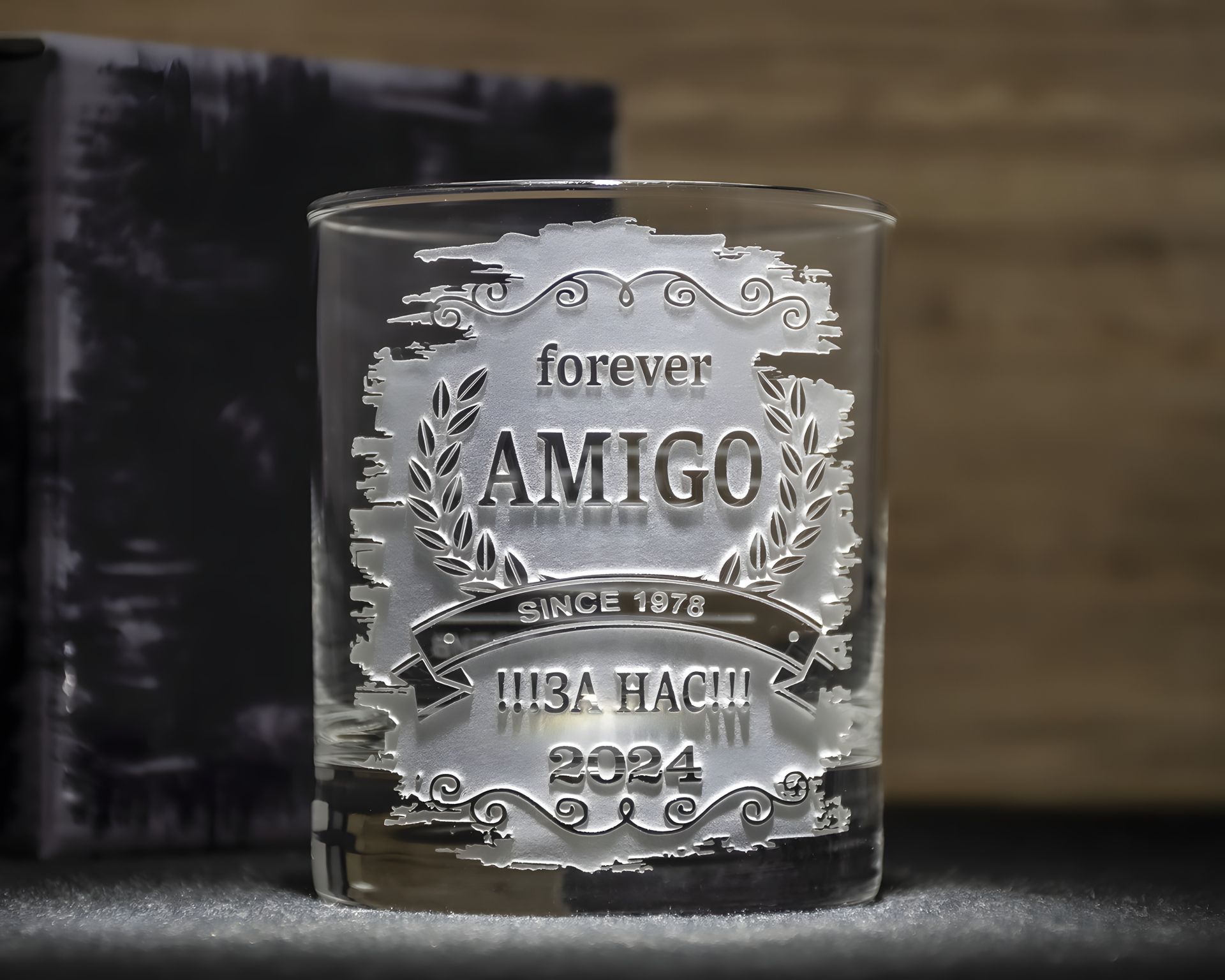 Іменна склянка для віскі з гравіюванням і текстом привітання на дві сторони