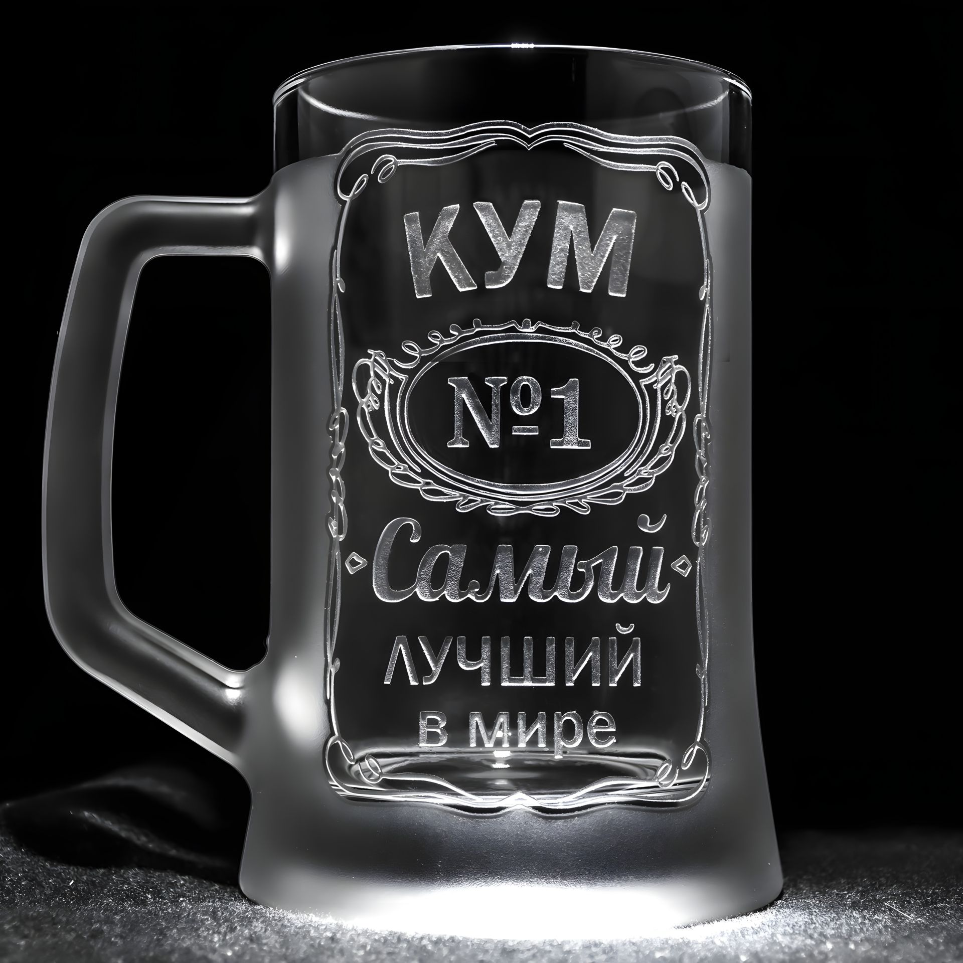 Бокал для пива з ручним механічним гравіюванням напису КУМ №1 Самый лучший в мире, матовий у подарунковій коробці