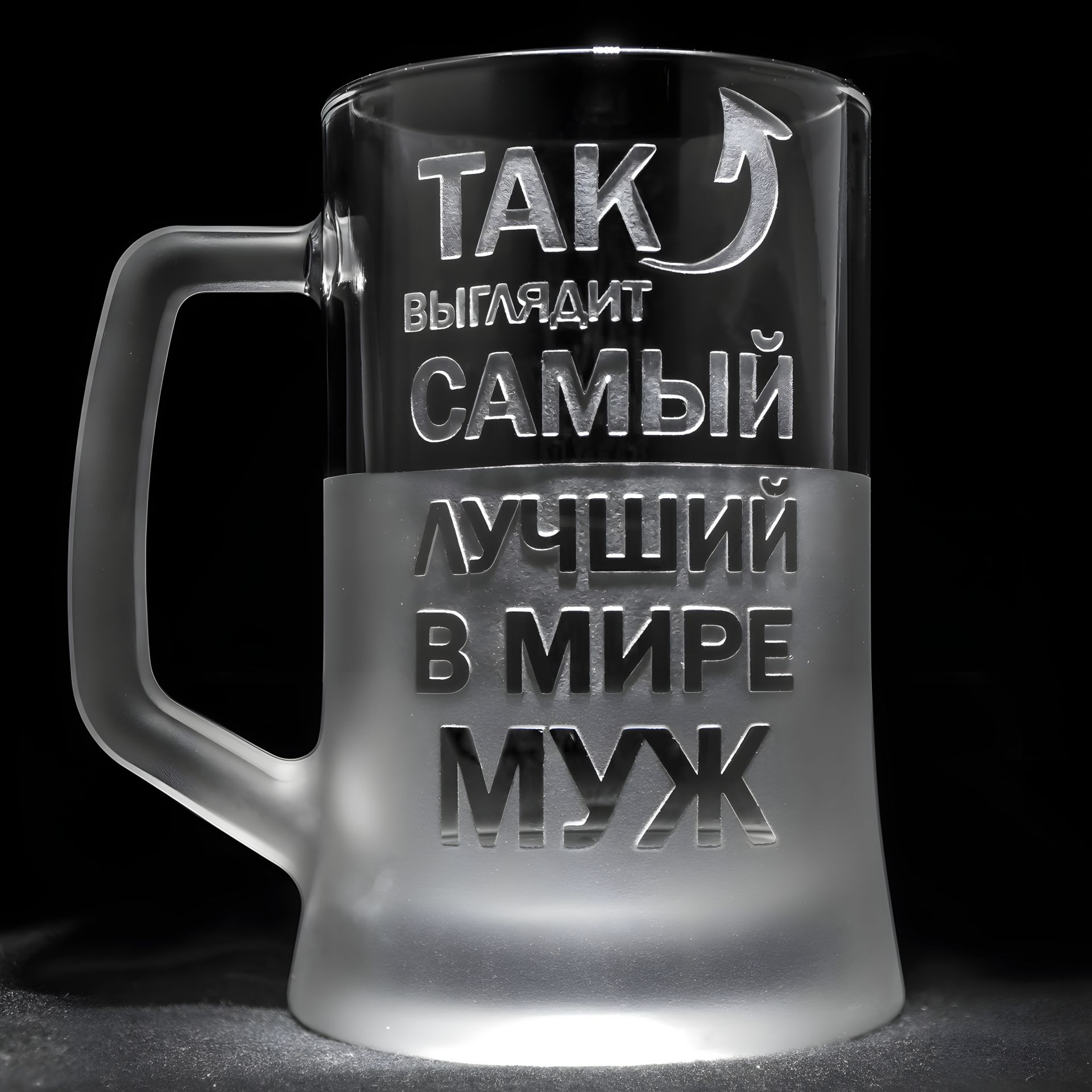 Бокал для пива з ручним механічним гравіюванням напису "Так выглядит самый лучший в мире Муж" у подарунковій коробці