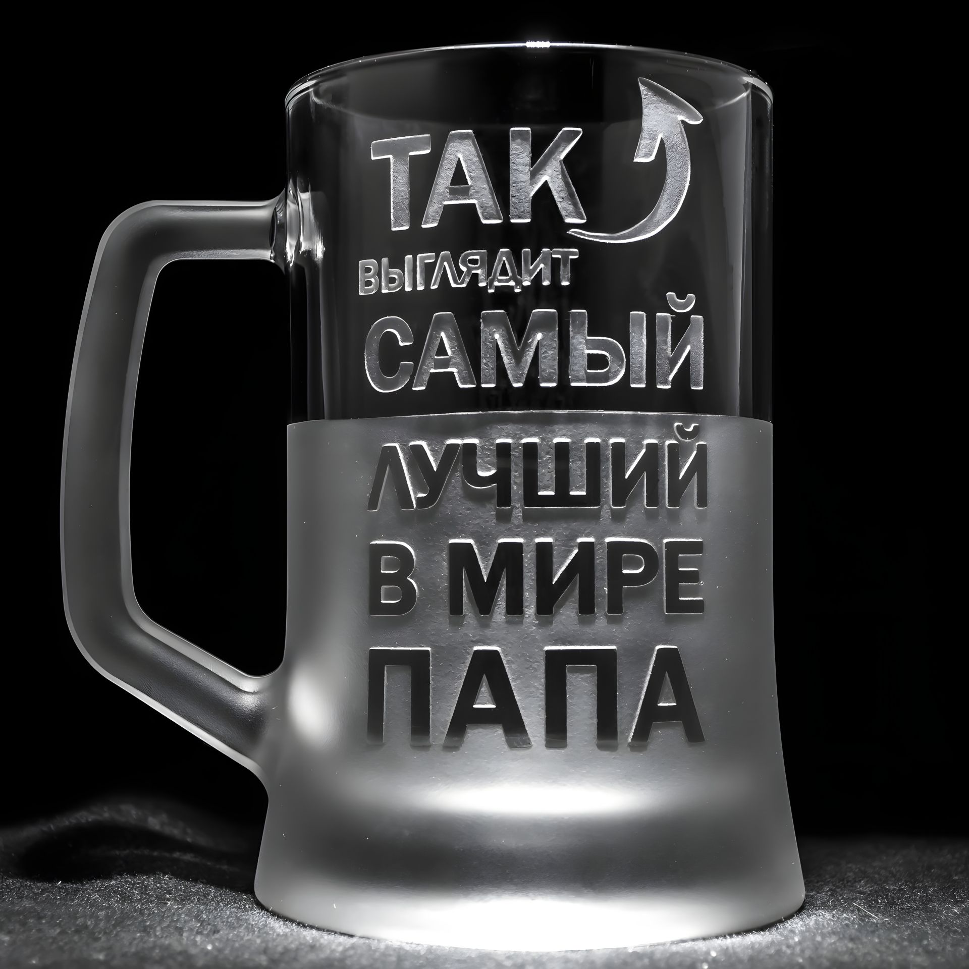 Бокал для пива з ручним механічним гравіюванням напису "Так выглядит самый лучший в мире Папа" у подарунковій коробці