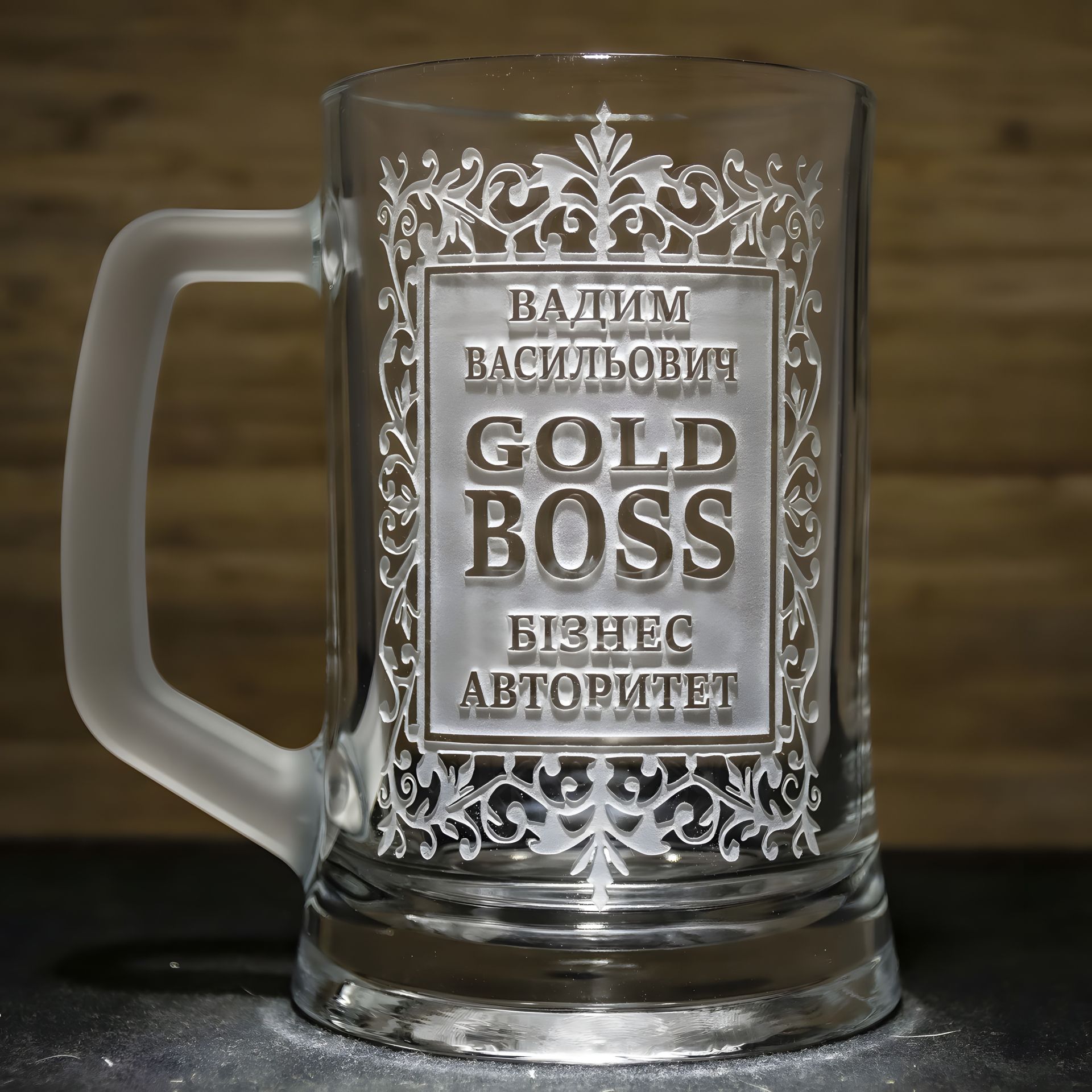 Іменний пивний келих з гравіюванням для подарунка начальнику, директору, шефу