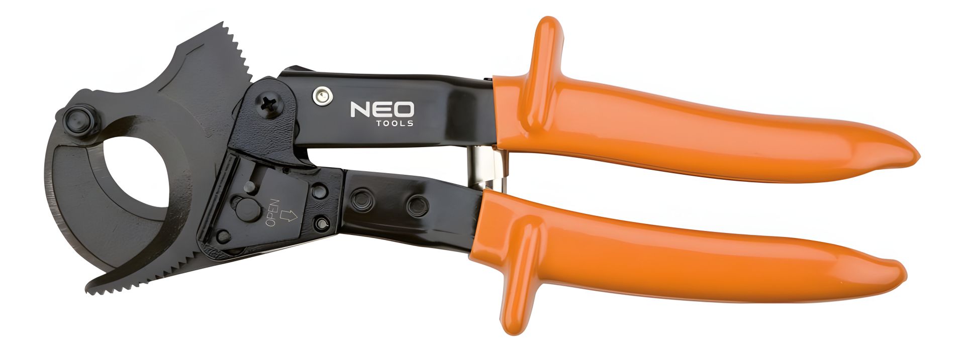 Кабелеріз з тріскачкою 250 мм для мідного та алюмінієвого кабелю, сертифікат TÜV NEO 01-516