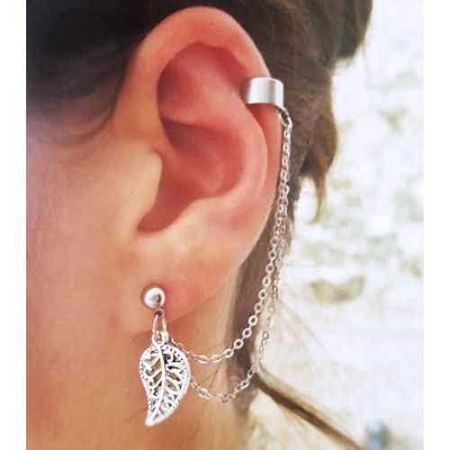 Сережка каф листя ажурний листочок кліпс на вухо без проколювання вгорі кліпса 1шт