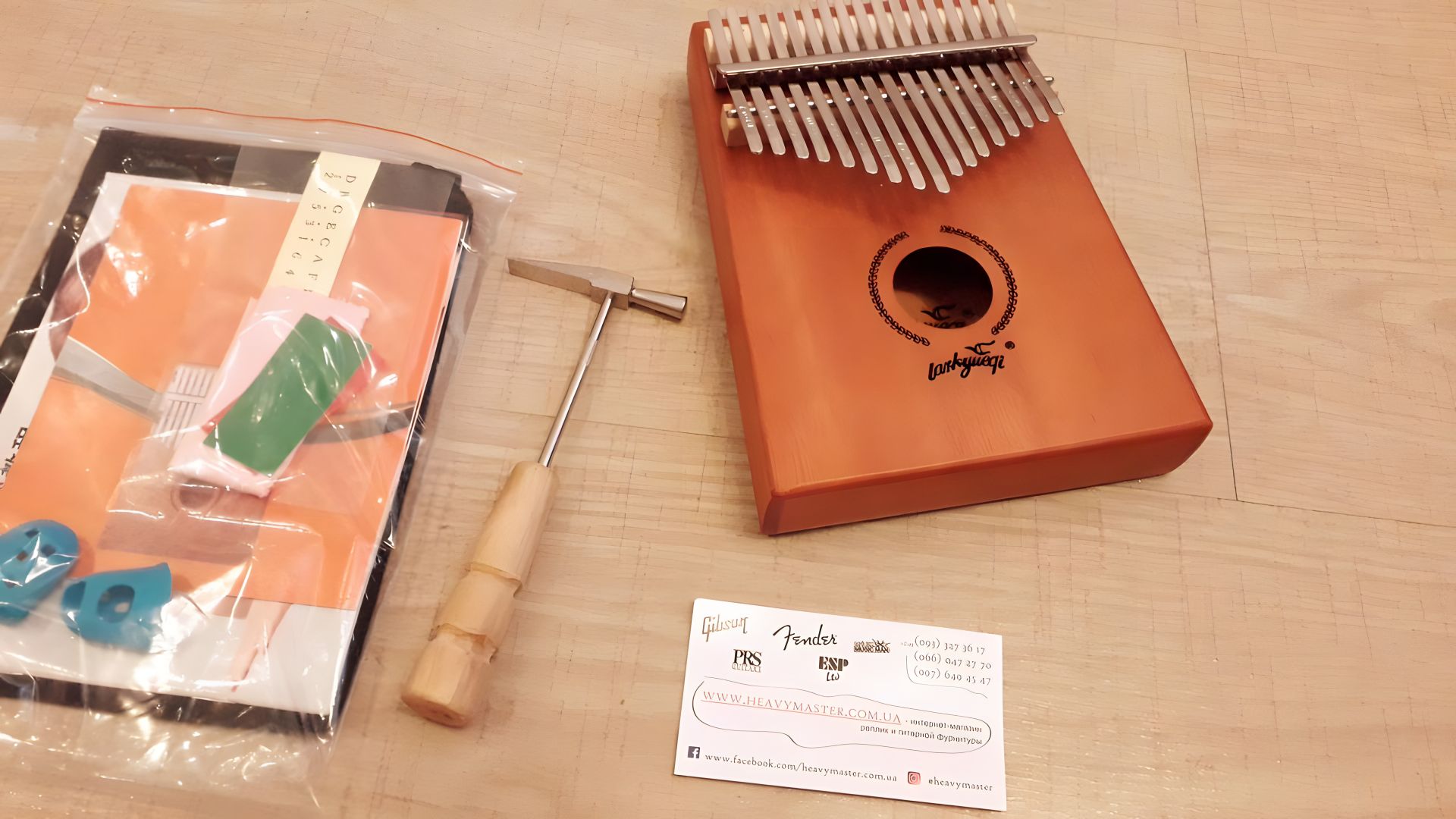 На резонаторному корпусі калімби розміщується ряд із 17 металевих пластин-язичків. Калімба має дерев'яний корпус-резонатор. Кожна пластина позначена гравіюванням (нотою).