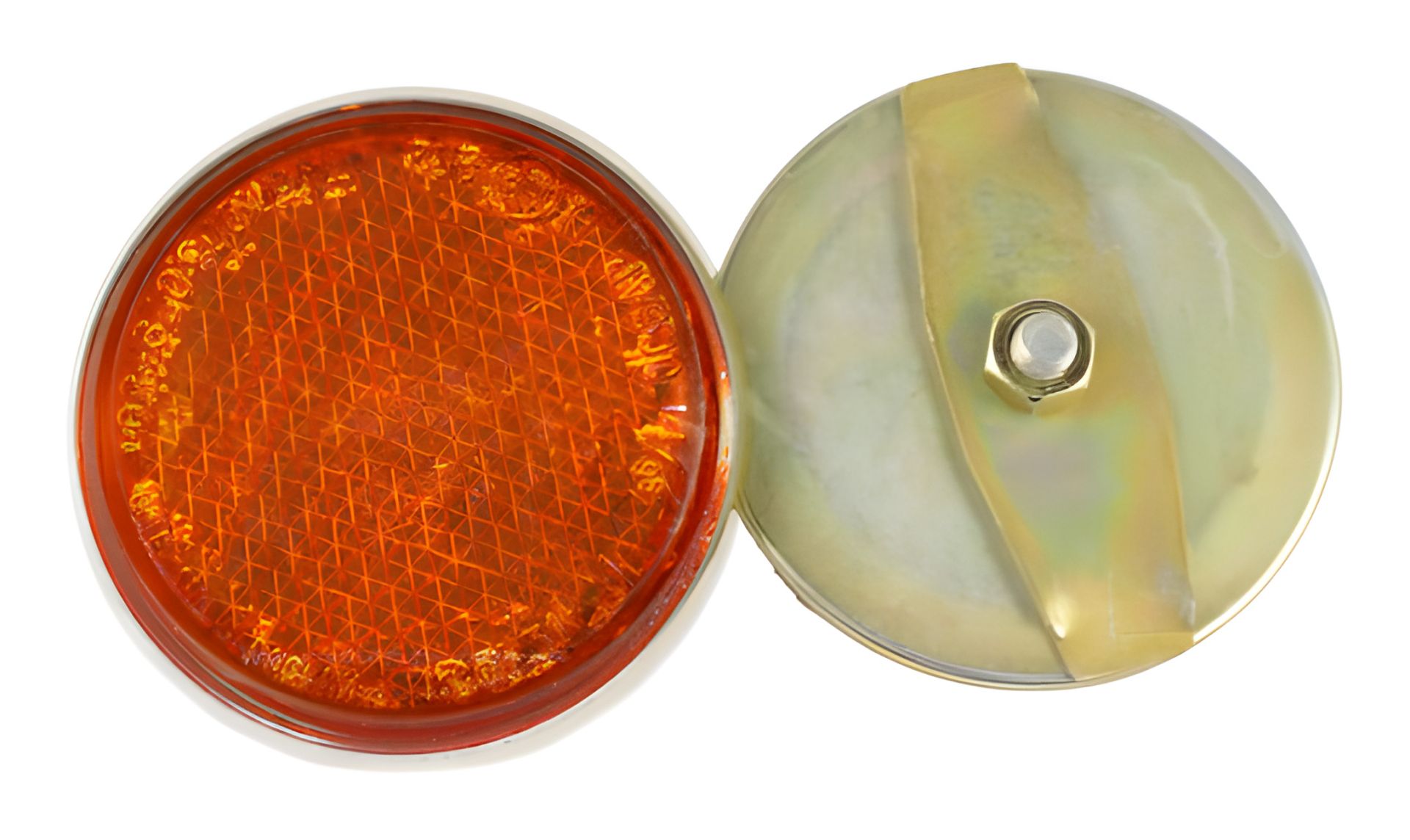 Жовтогарячий круглий катафот на спиці, кріплення на гайці