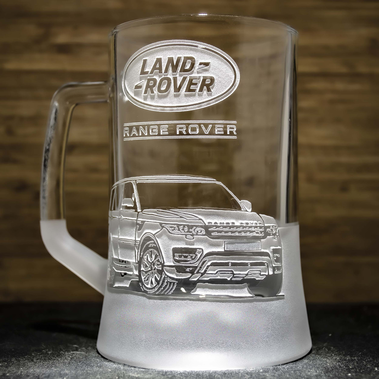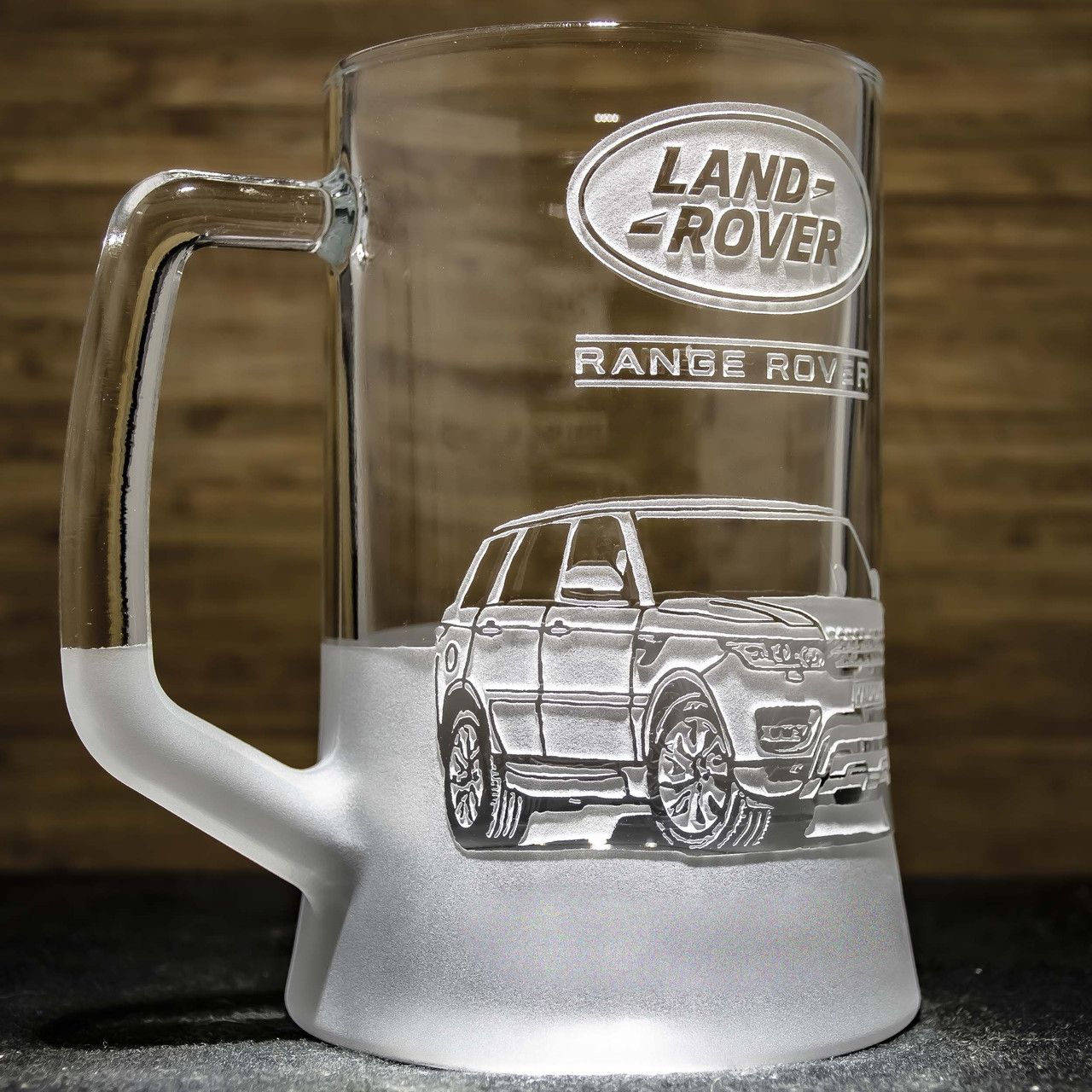 Cкляний кухоль для пива з ручним механічним гравіюванням Land Rover Range Rover у подарунковій коробці