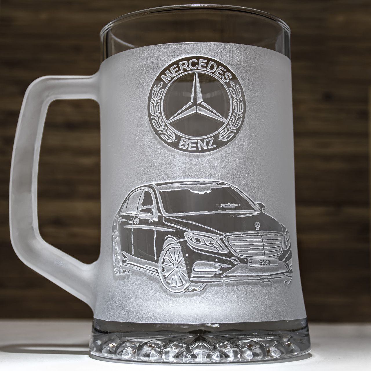 Кухоль для пива з ручним механічним гравіюванням Mersedes S 500, у подарунковій коробці