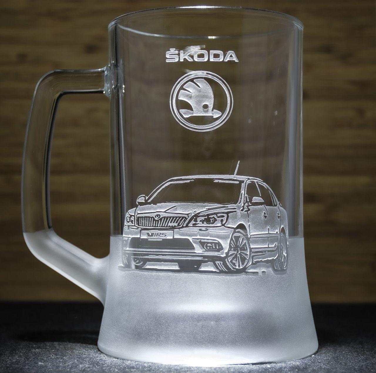 Сувенірний скляний кухоль для пива з ручним механічним гравіюванням SKODA Octavia у подарунковій коробці