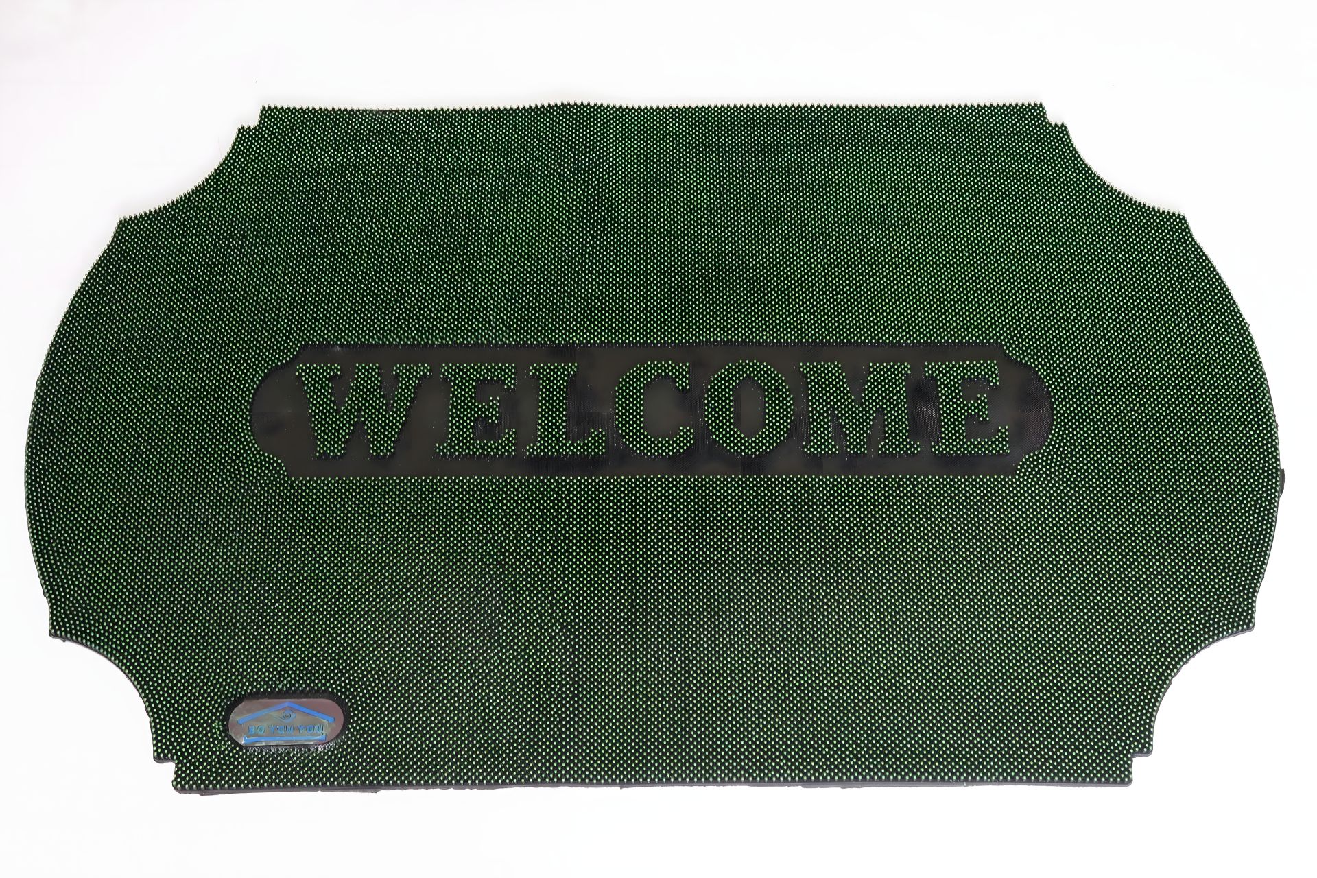 Килимок для входу ( придверний килимок) із написом "WELCOME ". Використовується біля дверей для витирання взуття перед входом у приміщення. Вироблений з гуми з текстурованою поверхнею для ефективного збору бруду і вологи.