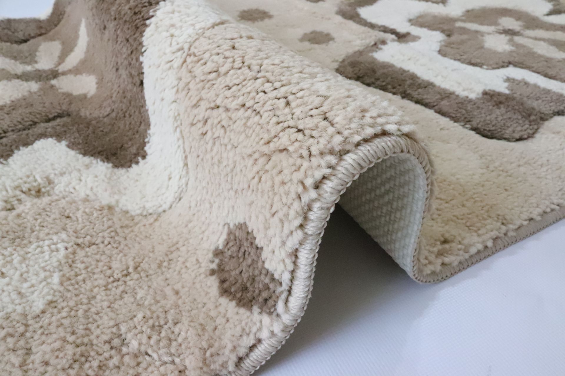 Килим у ванній кімнаті Vonaldi Ultra має густу щільну купу. Розмір 66*120 см. Він виготовлений з поліпропілену на основі латексу, швидко висихає, не ковзає по підлозі, легко працювати. Досить мерехти, якщо це необхідно, дозволено автоматичне промивання. Основа латексу дозволяє використовувати їх на підлозі нагріву. Виробництво - Türkiye.