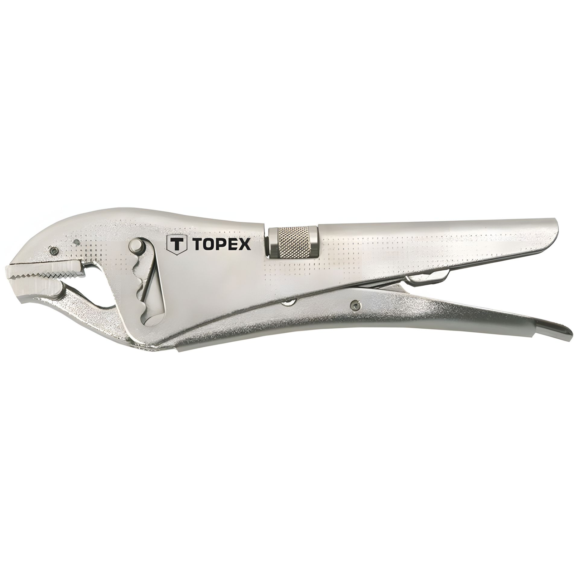 Кліщі затискні TOPEX завдовжки 225 мм, з робочим діапазоном 0 – 50 мм. Храповий механізм забезпечує стиск у 4 діапазонах. Губки з високоякісної хромованадієвої сталі, що забезпечує тривалий термін служби інструменту. Бренд TOPEX призначений для домашніх майстрів.