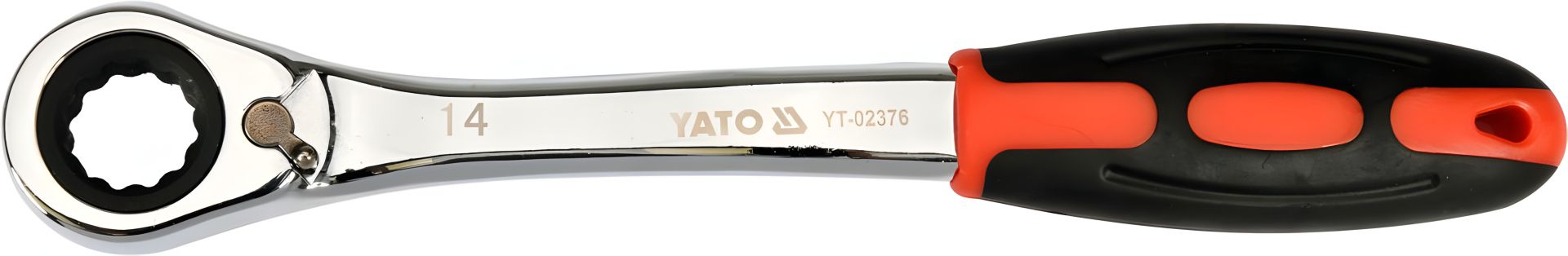 Ключ накидний, вигнутий з тріскачкою: М14, HRC 42-48, Cr-V, з ергономічною прогумованою ручкою Yato YT-02376