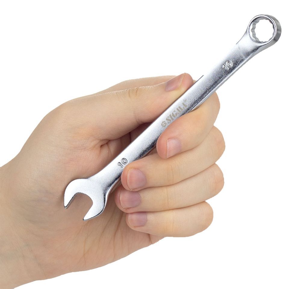Ключ ріжково-накидний 10мм CrV satine SIGMA (6021101) виготовлений з хромванадієвої сталі, має антикорозійне покриття з хрому, матова поверхня (сатинова).