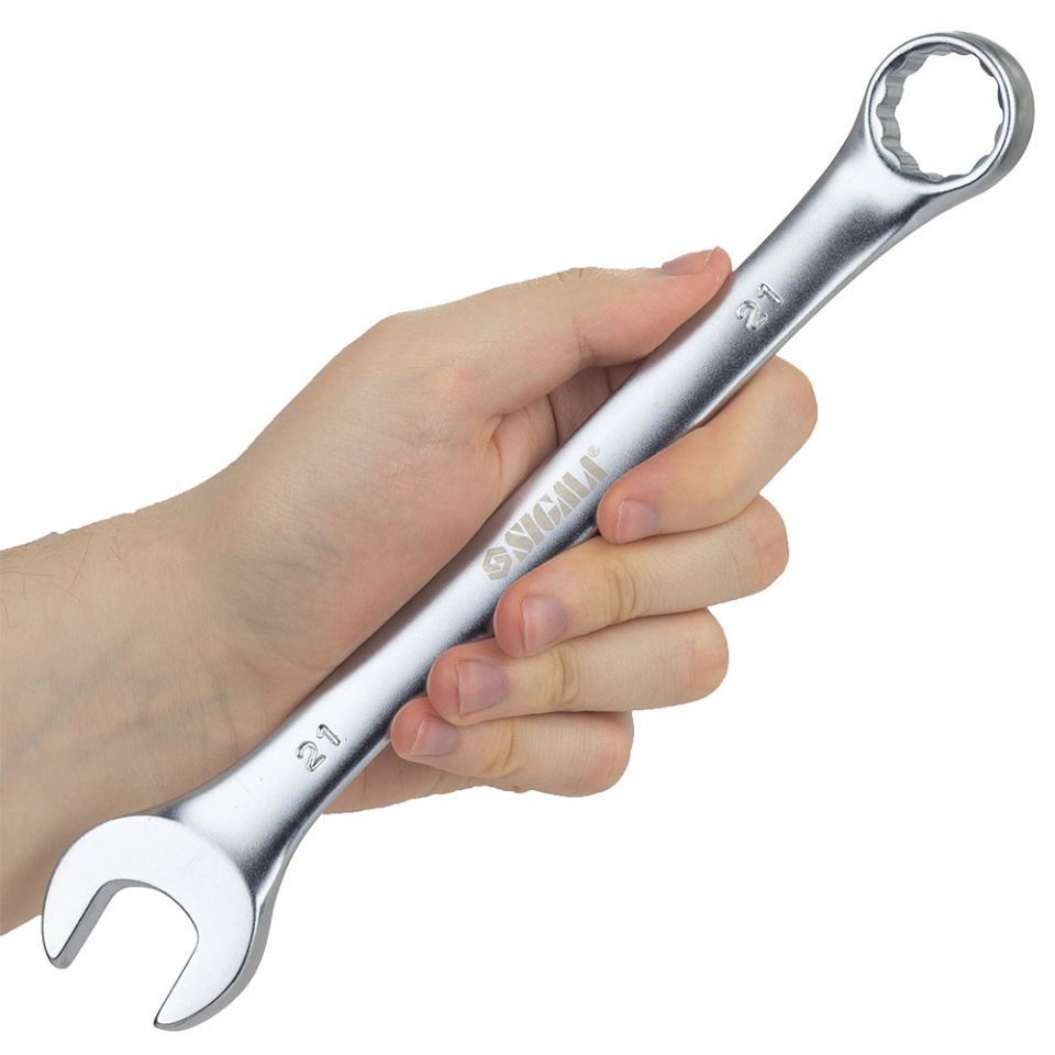 Ключ ріжково-накидний 21мм CrV satine SIGMA (6021211) є необхідним інструментом при складанні та розбиранні болтових з'єднань, що мають шестигранний профіль.