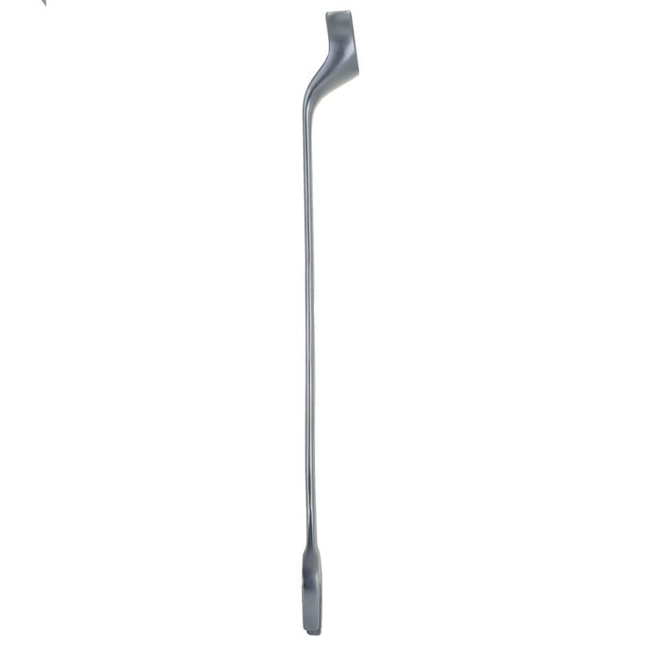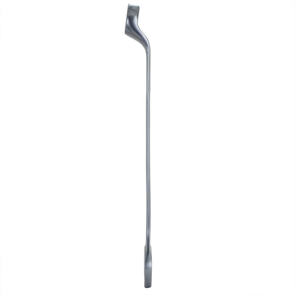 Накидна робоча частина ключа зміщена щодо його рукоятки, що дозволяє працювати у важкодоступних місцях.
