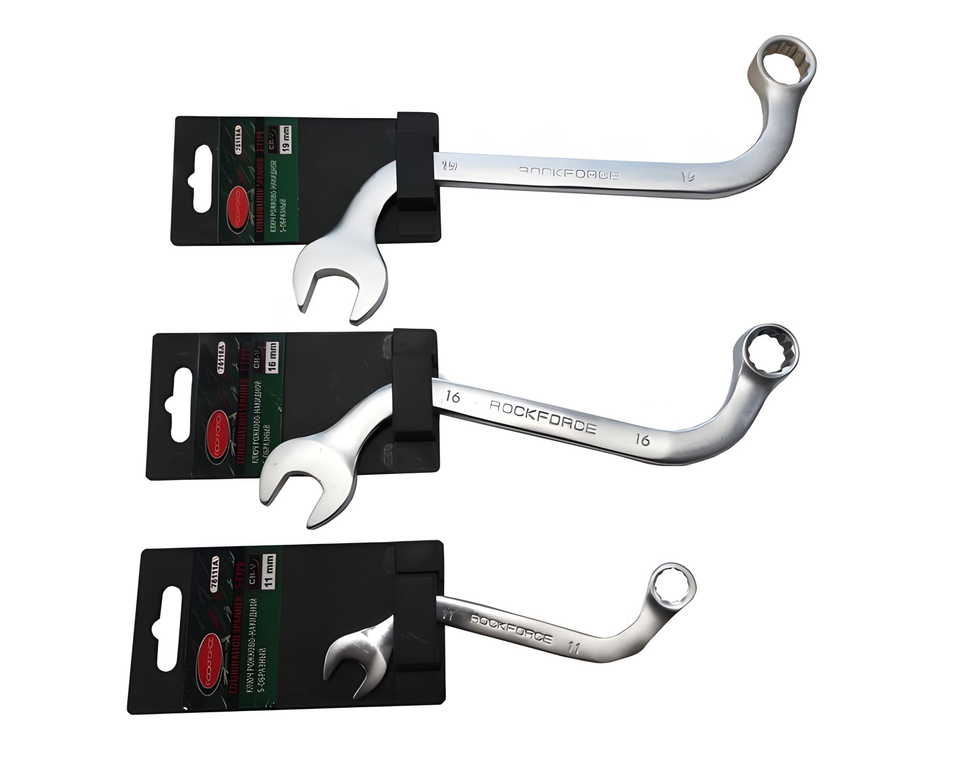 S-подібний ключ ріжково-накидний 10мм, пластиковий утримувач ROCKFORCE RF-76110A