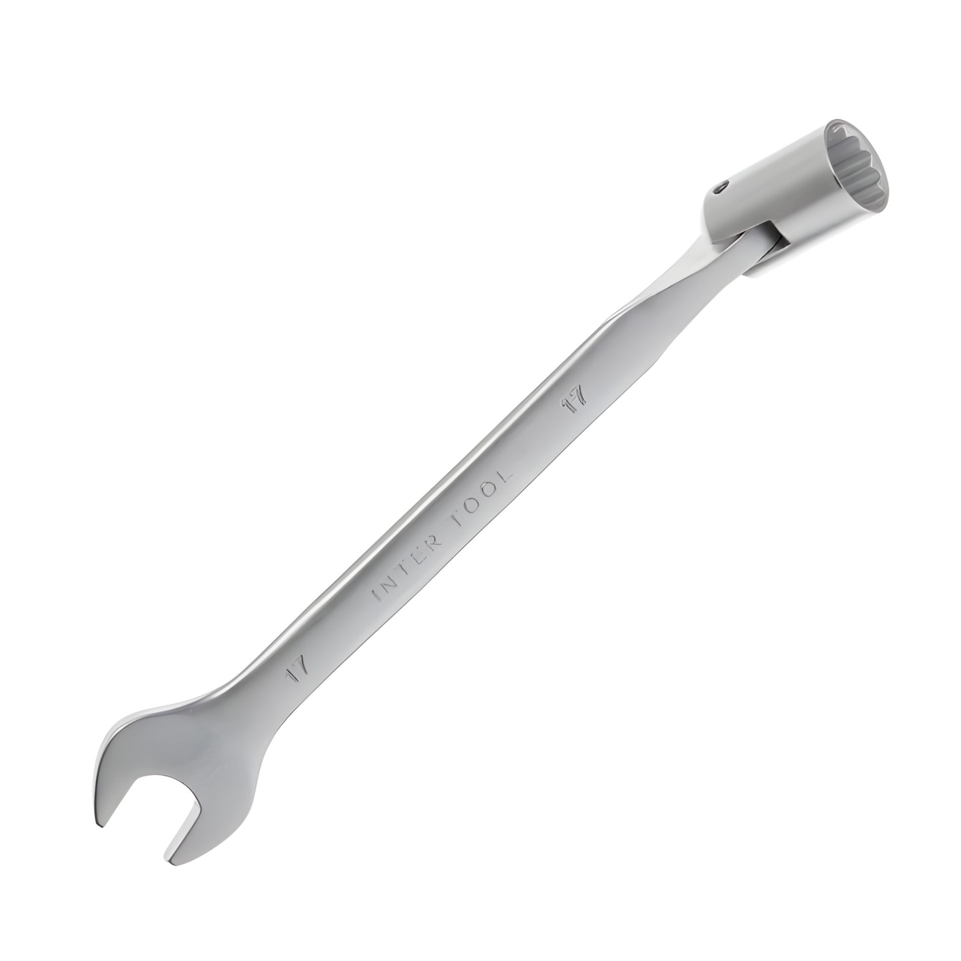 Рожково-накидний ключ, шарнірний, 17 мм, Cr-V, сатин-хром покриття INTERTOOL XT-1417