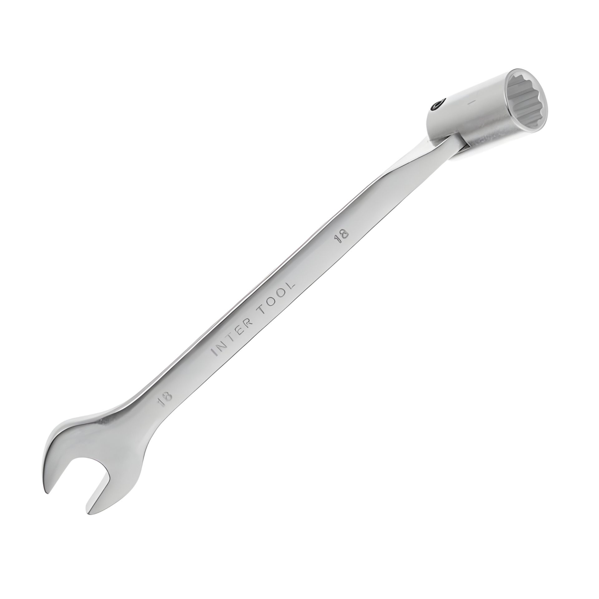 Ключ шарнірний рожково-накидний, 18 мм, Cr-V, сатин-хром покриття INTERTOOL XT-1418