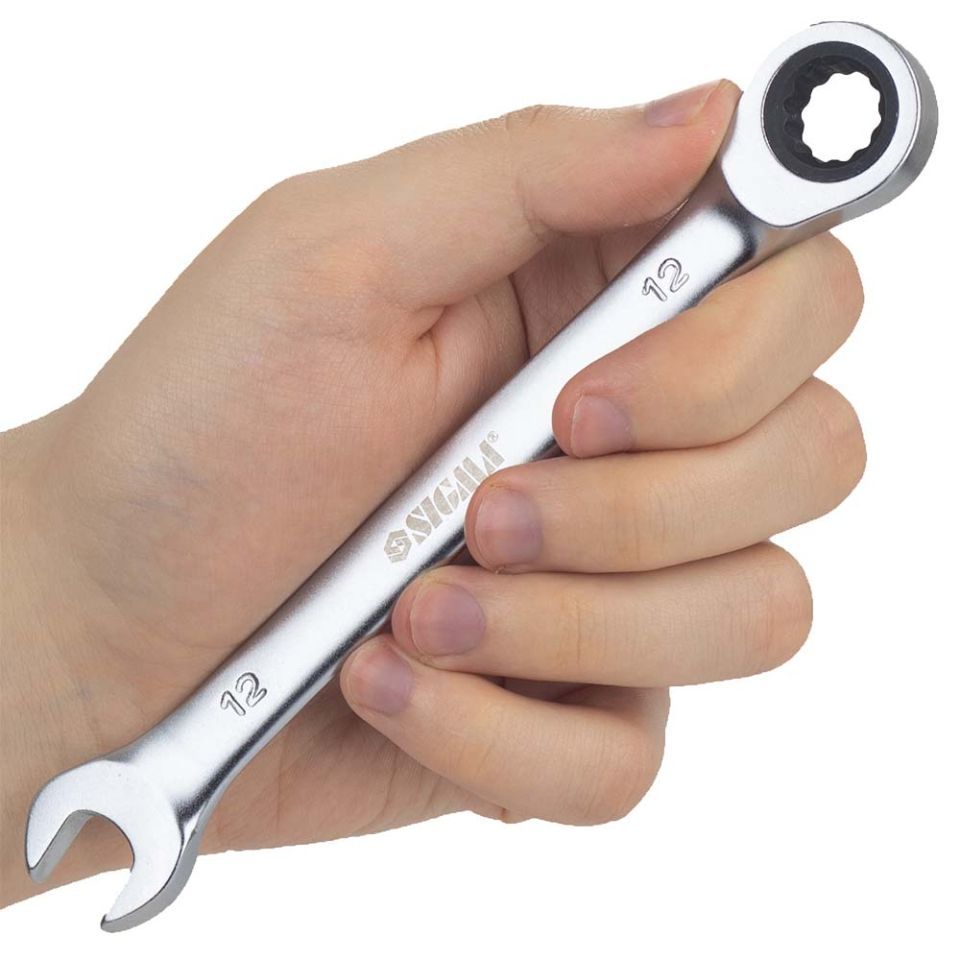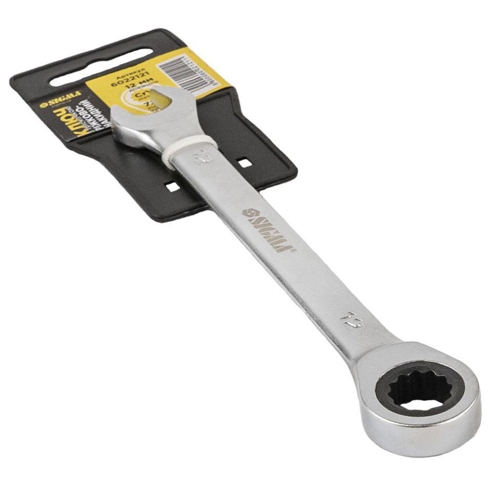 Ключ ріжково-накидний тріскачний 12мм CrV SIGMA (6022121) використовується для роботи з болтовими з'єднаннями (для відкручування або закручування гайок та болтів). Рожковий ключ забезпечує більший робочий діапазон у важкодоступних місцях.