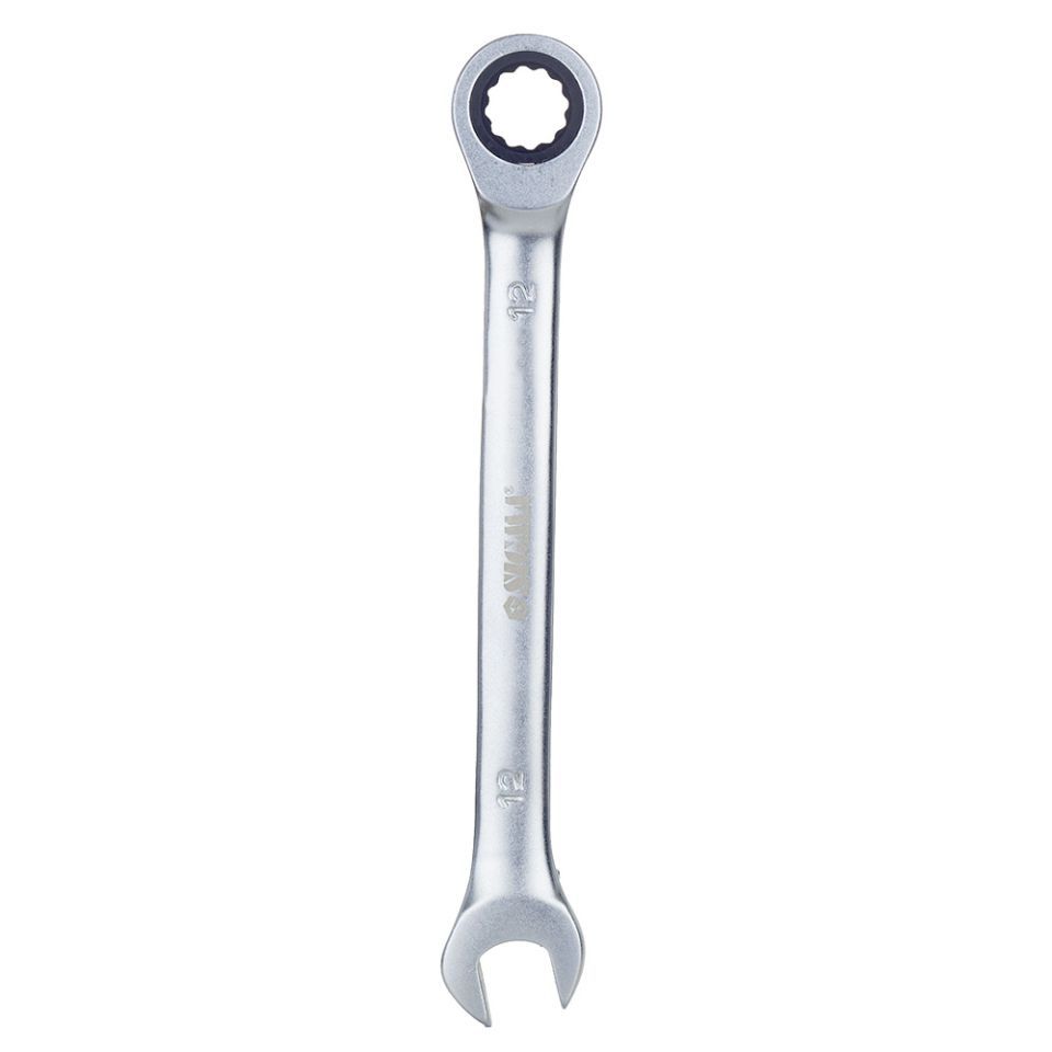 Дванадцятигранна накидна частина оснащена тріскачковим механізмом на 72 зуби і забезпечує м'який і плавний хід (дозволяє повертати ключ із кроком 5° при роботі). Виготовлений із високоякісної хромованадієвої сталі, що забезпечує довгий термін служби ключа.