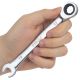 - Головка накидного ключа з храповим механізмом усуває необхідність щоразу встановлювати ключ на елемент кріплення