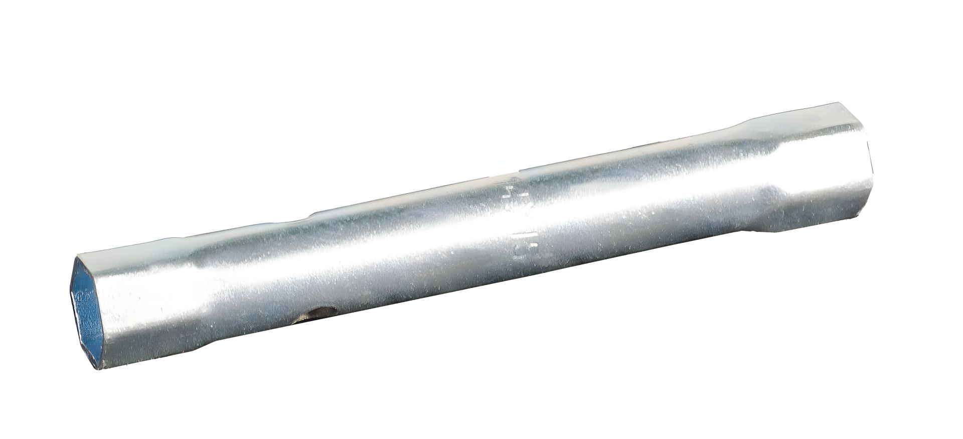 Трубчаста форма забезпечує доступ до кріплень у глибоких або важкодоступних місцях, а бічні отвори дозволяють використовувати додатковий важіль (металевий стрижень або викрутку), що значно полегшує роботу з тугими з'єднаннями. Ключ виготовлений із міцної сталі, стійкий до зношування та розрахований на тривалий термін експлуатації.