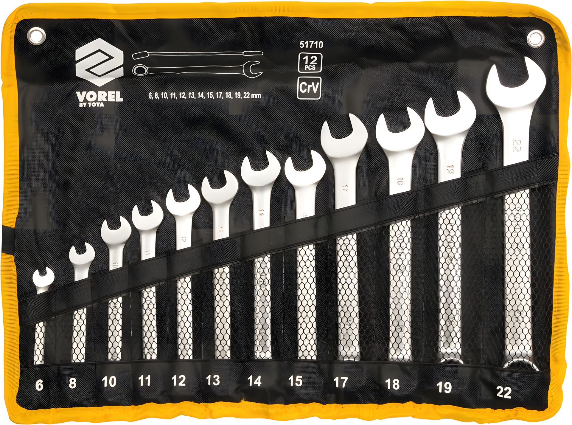 Набір комбінованих ключів 6-22 мм "САТИН" CrV, 12 шт. Vorel (51710)