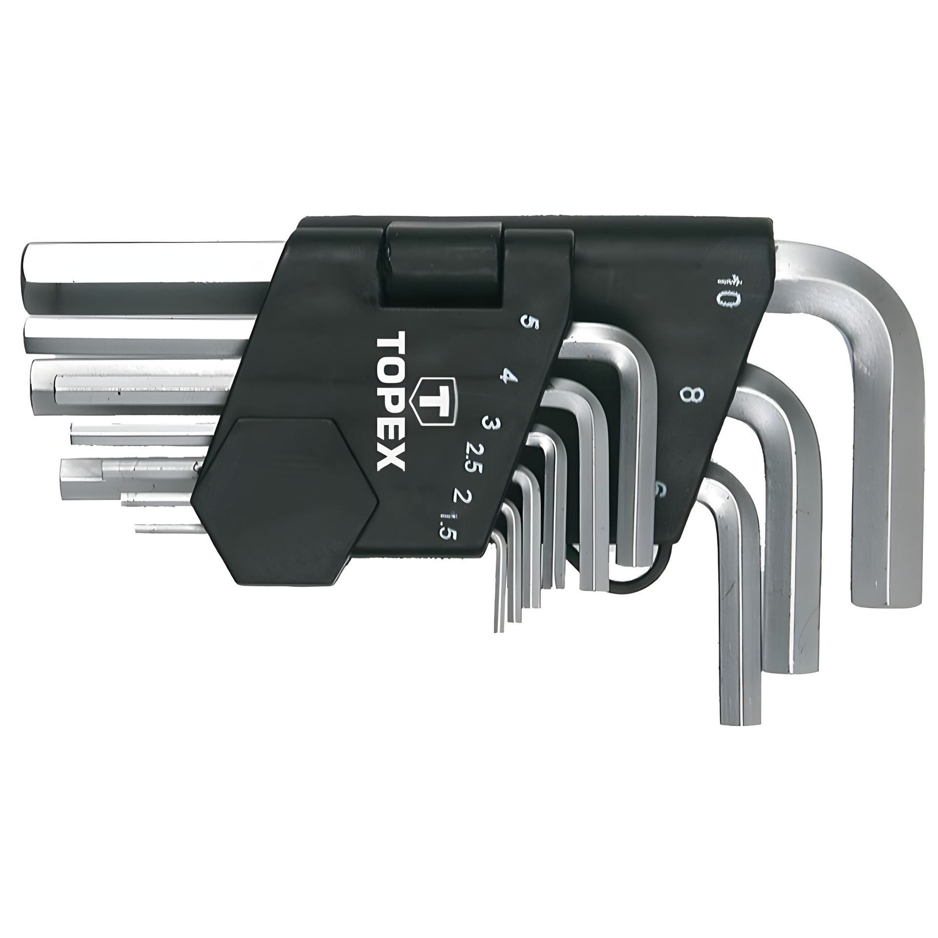 Ключі шестигранні 1.5-10 мм, набір 9 шт., Короткі, сталь CrV Topex 35D955