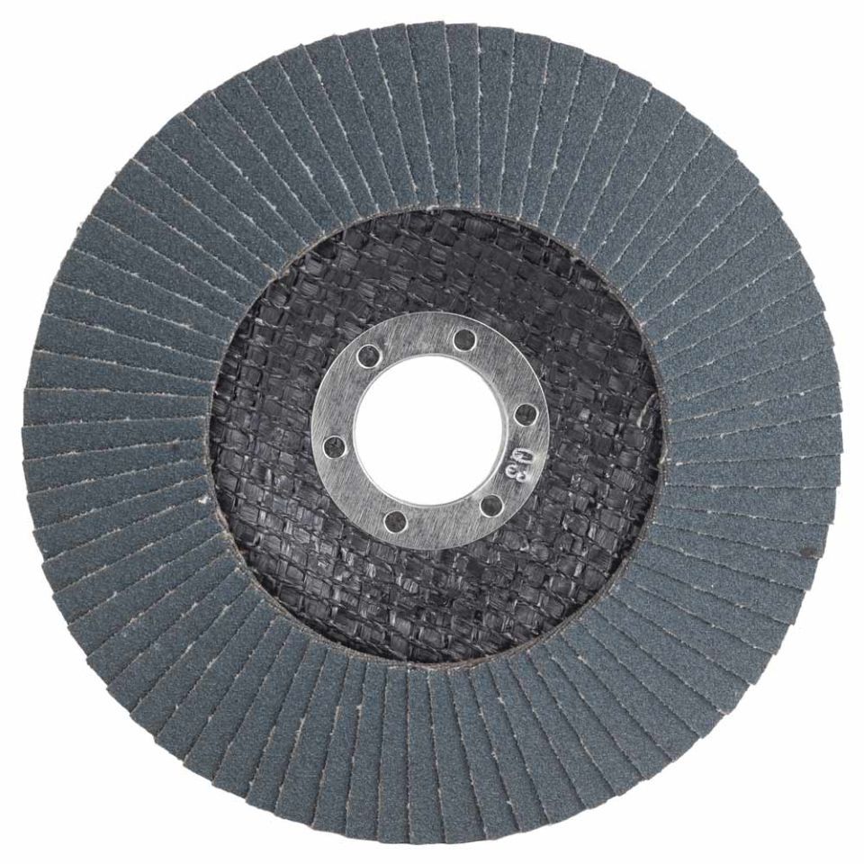 Електростатичний спосіб нанесення рівномірно розподіляє абразив по всій робочій поверхні пелюсток, що забезпечує однорідність поверхні обробки. Матеріал абразиву – цирконієвий електрокорунд (ZA; 38А).