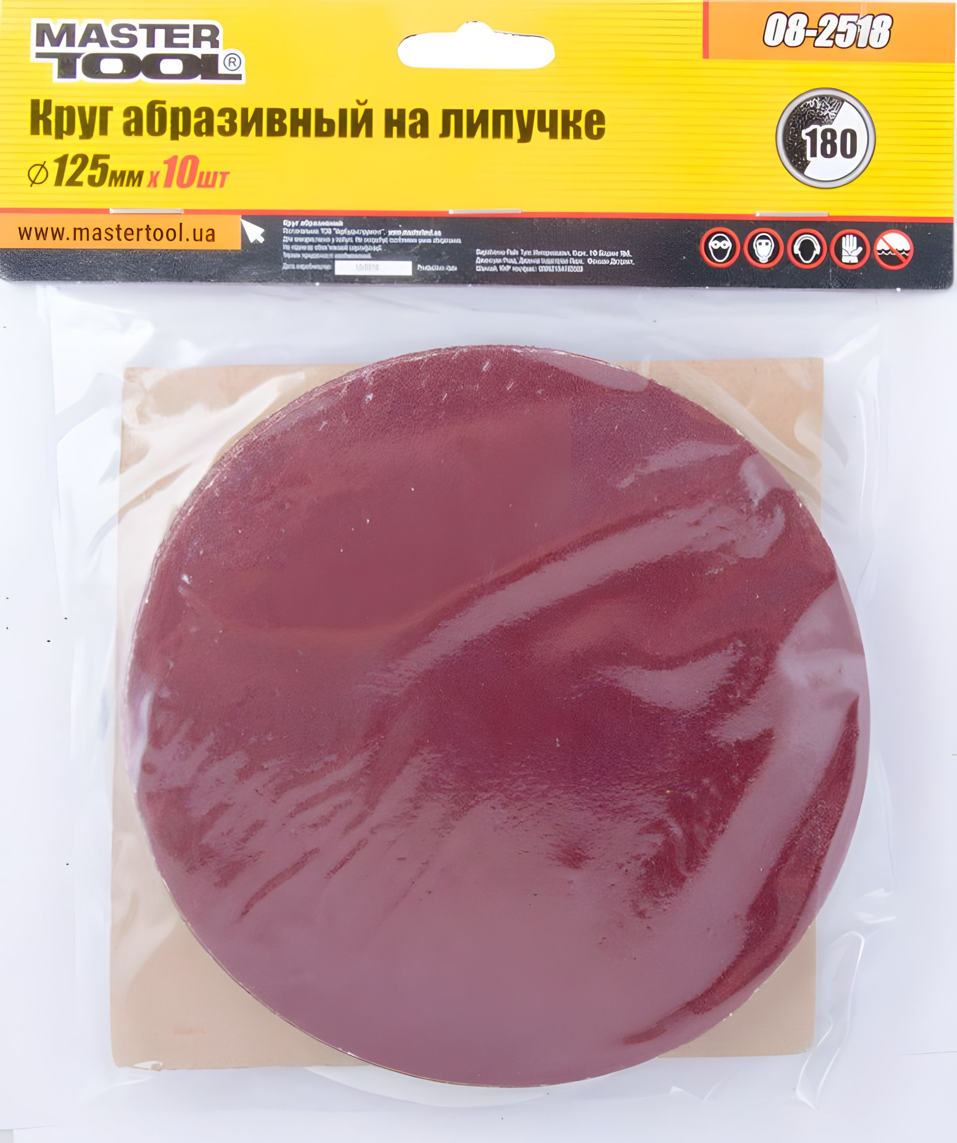 Шліфувальне коло на липучці 125 мм зерно 180, набір 10 шт MASTERTOOL 08-2518