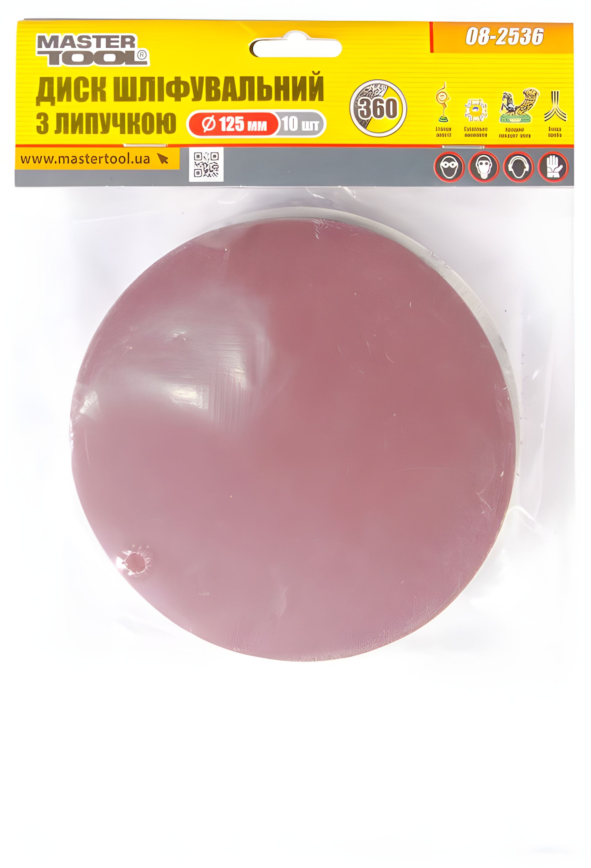 Шліфувальне коло на липучці 125 мм зерно 360, набір 10 шт MASTERTOOL (08-2536)