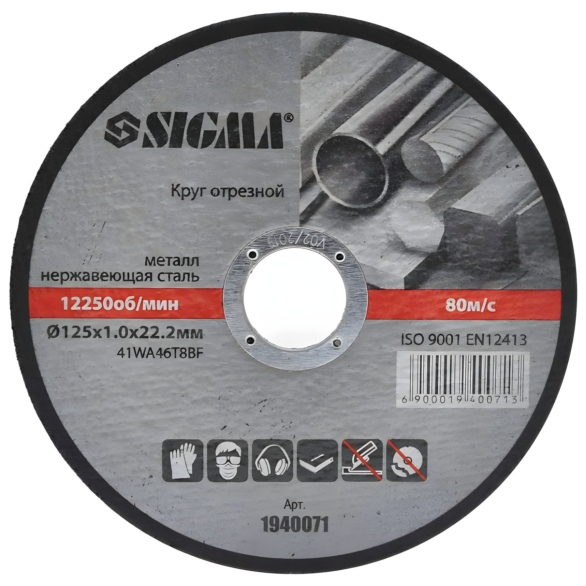 Відрізне коло по металу та нержавійці Ø125×1.0×22.2мм, SIGMA 1940071