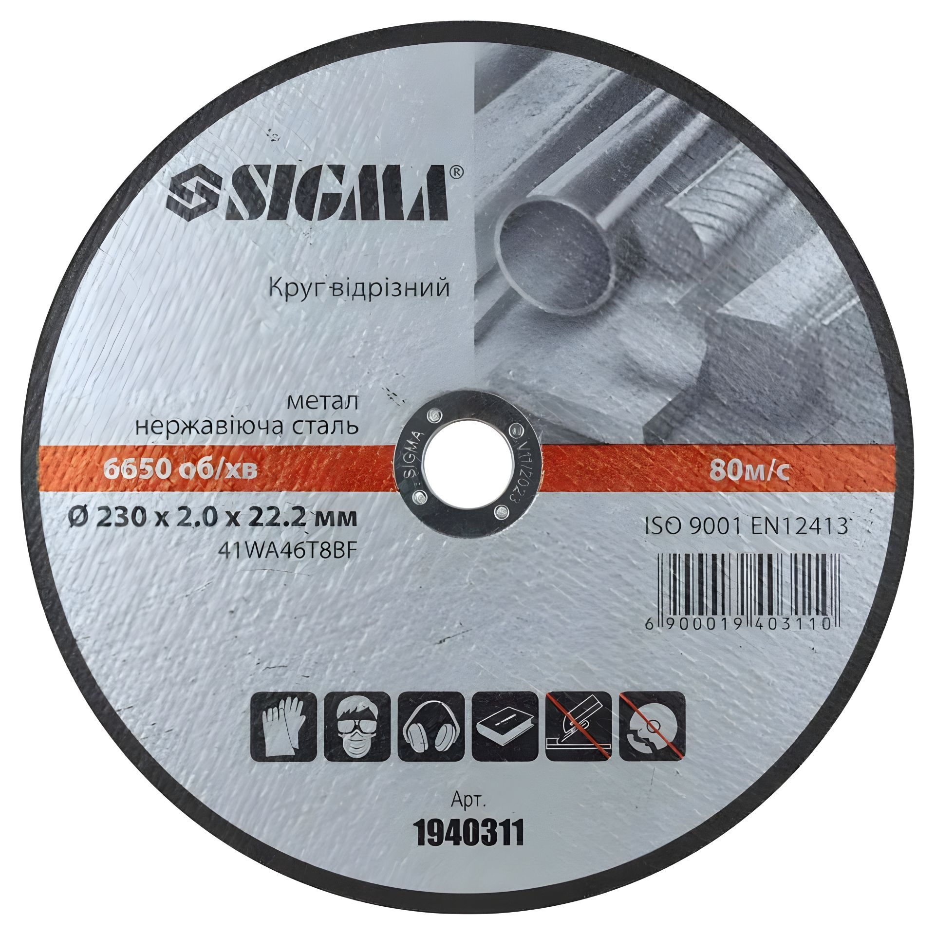 Відрізний круг для металу та нержавіючої сталі Ø230×2.0×22.2 мм, 6650 об/хв SIGMA 1940311