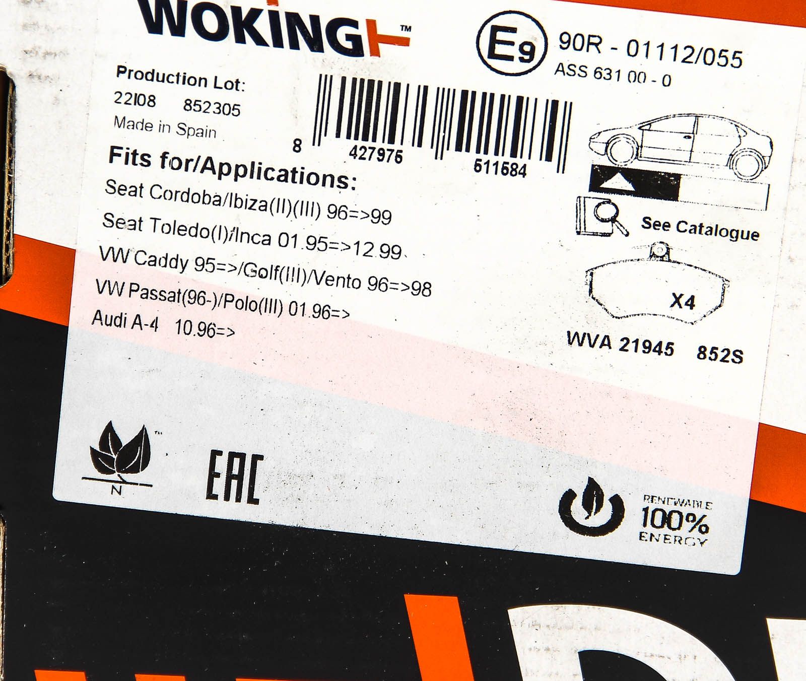 Передні гальмівні колодки для Caddy/Cordoba/Golf/Ibiza/Lupo (91-05), WOKING (P731300)