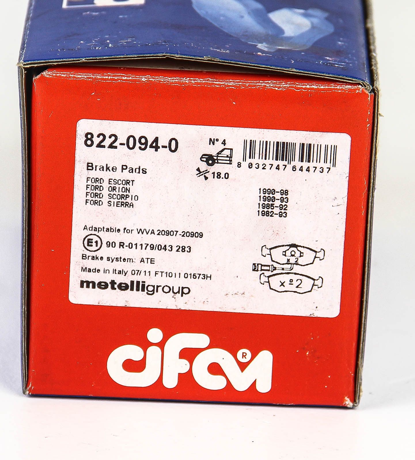 Передні гальмівні колодки для Ford Escort/Sierra 84-99 (ATE), CIFAM (8220940)