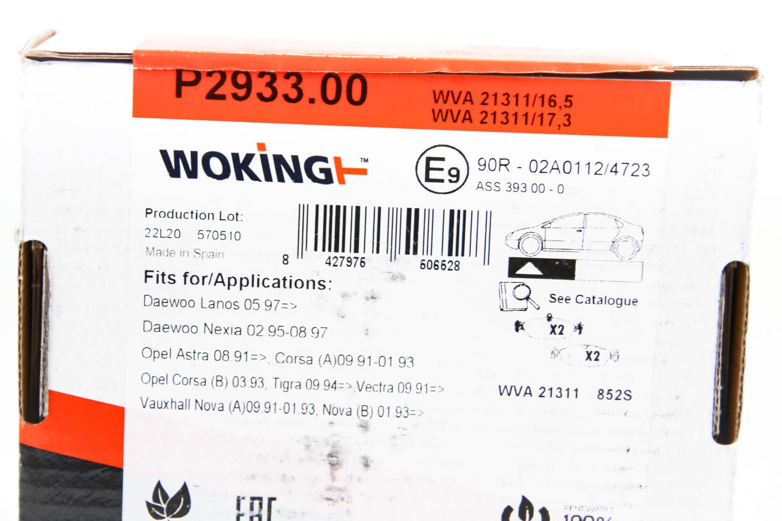 Колодки передні гальмівні LANOS (KLAT) (1997 - 2024), WOKING (P293300)