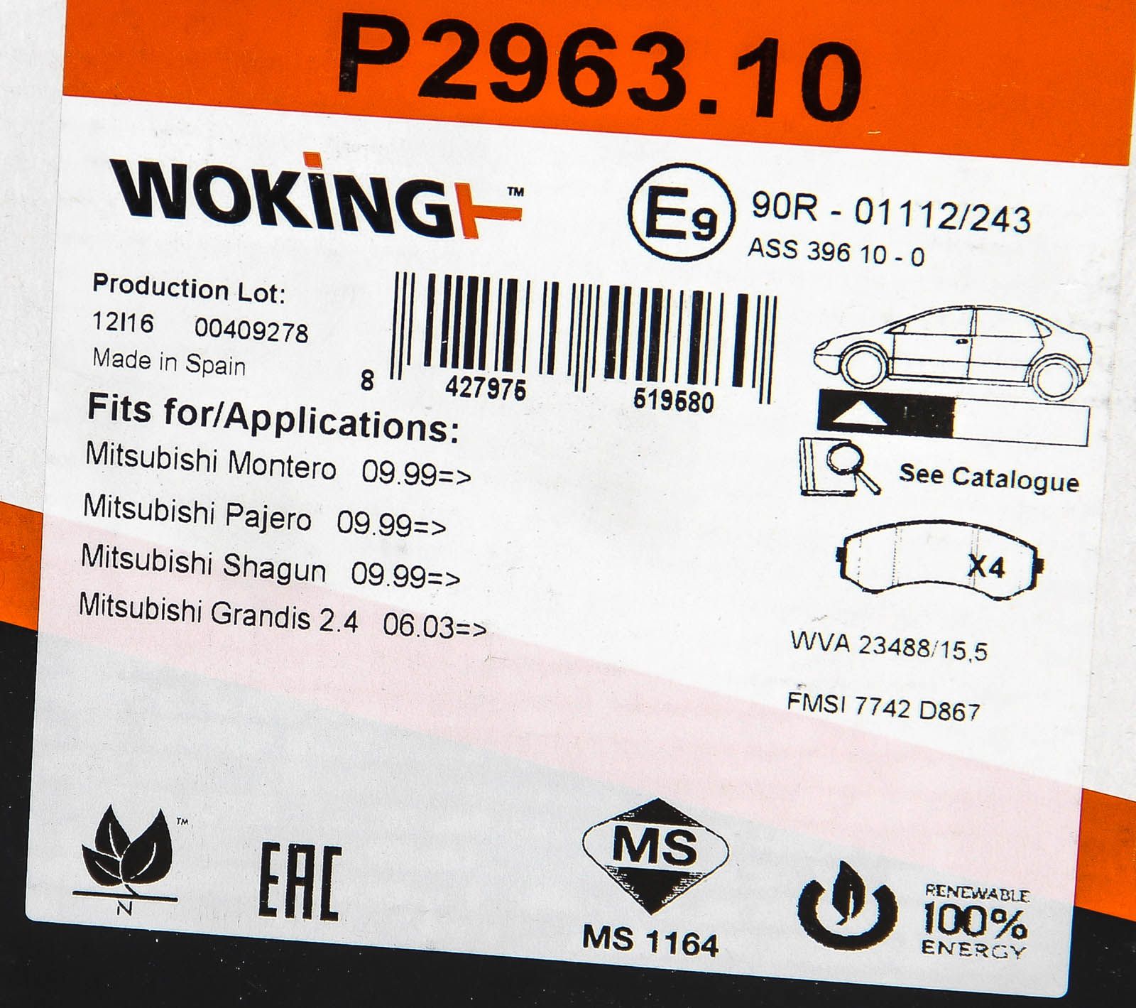 Передні гальмівні колодки Mitsubishi Grandis 04-11/Pajero 90- (sumitomo), WOKING (P296310)