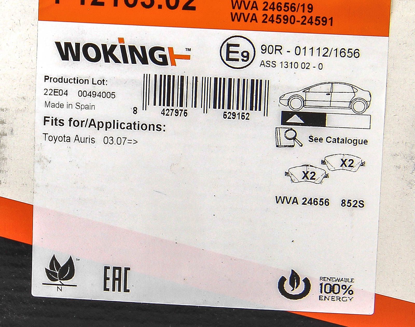 Гальмівні передні колодки Toyota Auris 07-12 (bosch) (136,7x57,9x19,2), WOKING (P1210302)