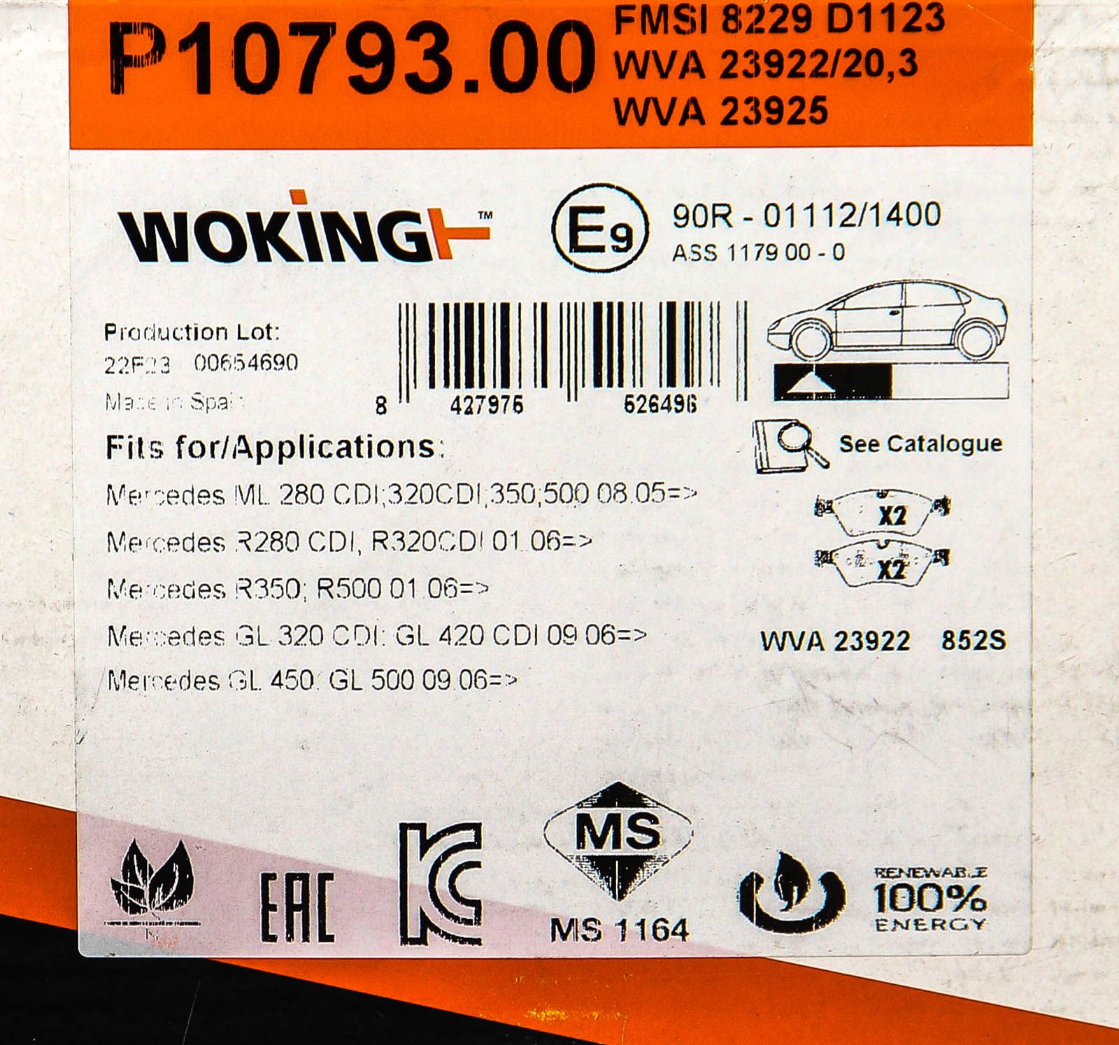 Гальмівні передні колодки W251/W164/W463/W164/W211 03-14, WOKING (P1079300)