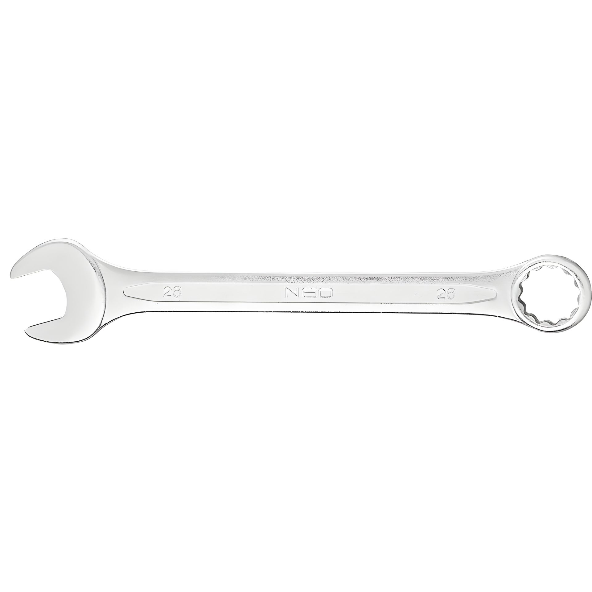Ключ комбінований 28 мм, сталь CrV, DIN3113, перештампований, сатинований, вигнута полірована головка під кутом 15° NEO 09-728