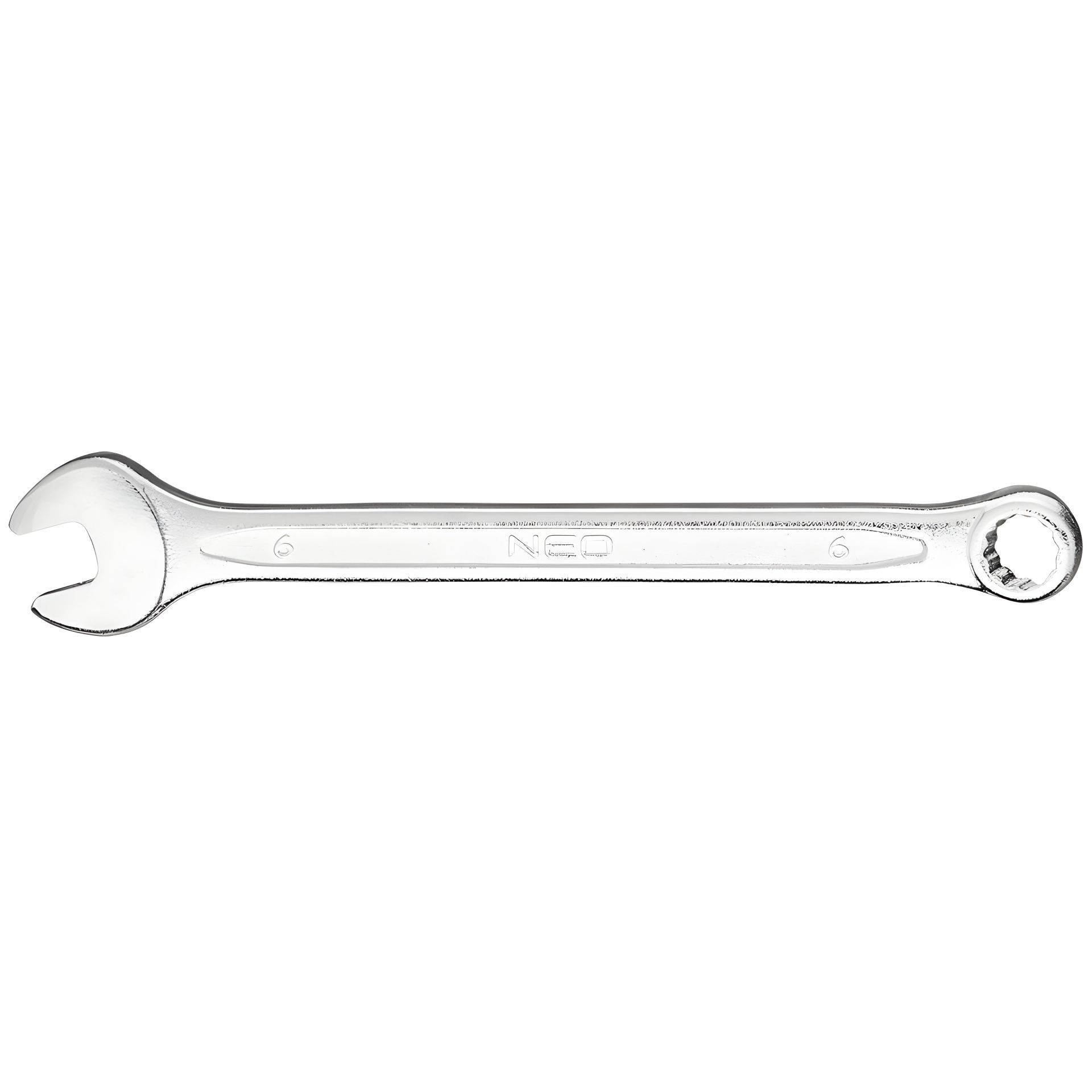 Комбінований ключ 6 мм, сталь CrV, DIN3113, перештампований, сатинований, полірована голівка, під кутом 15° NEO 09-706